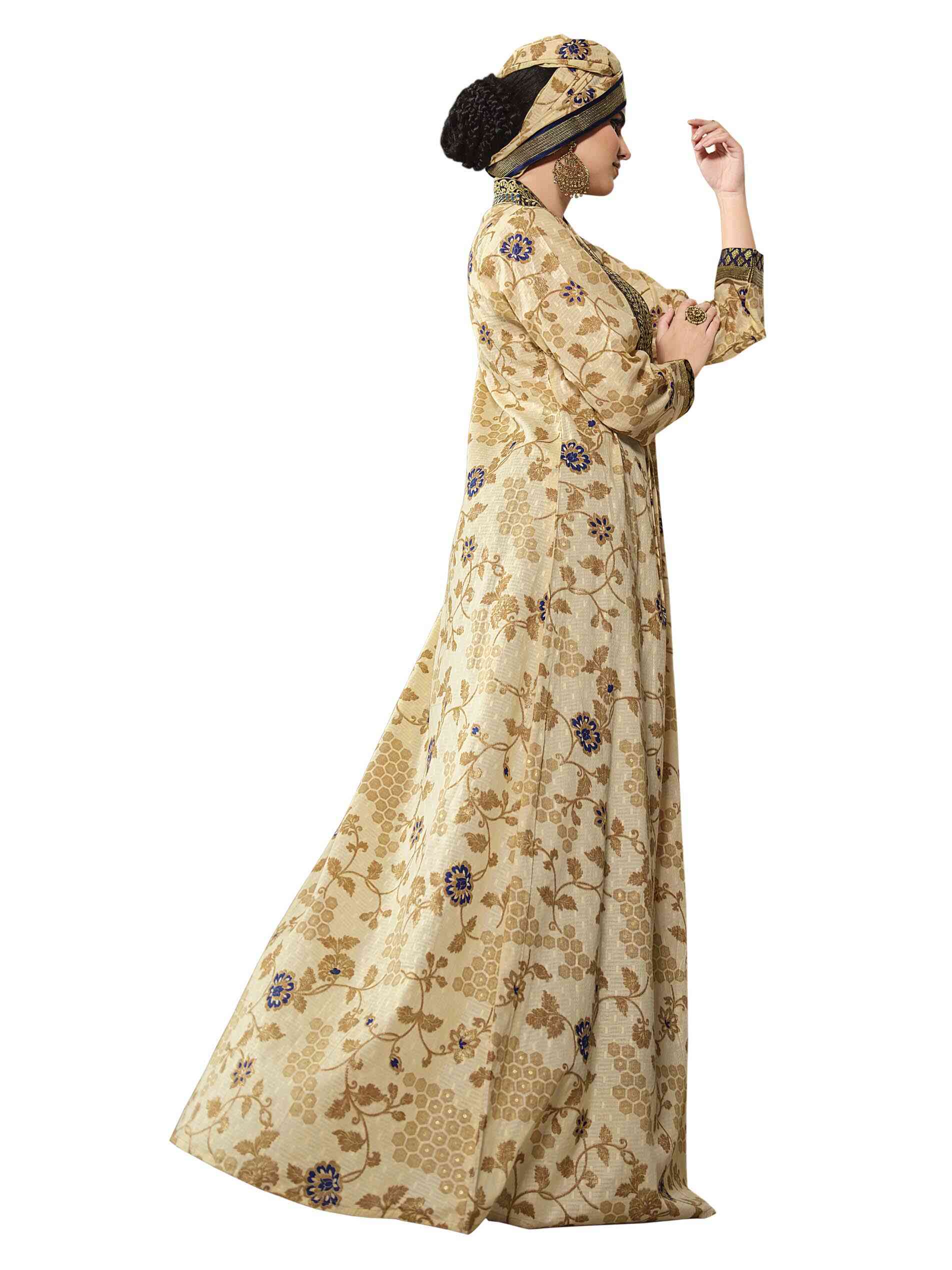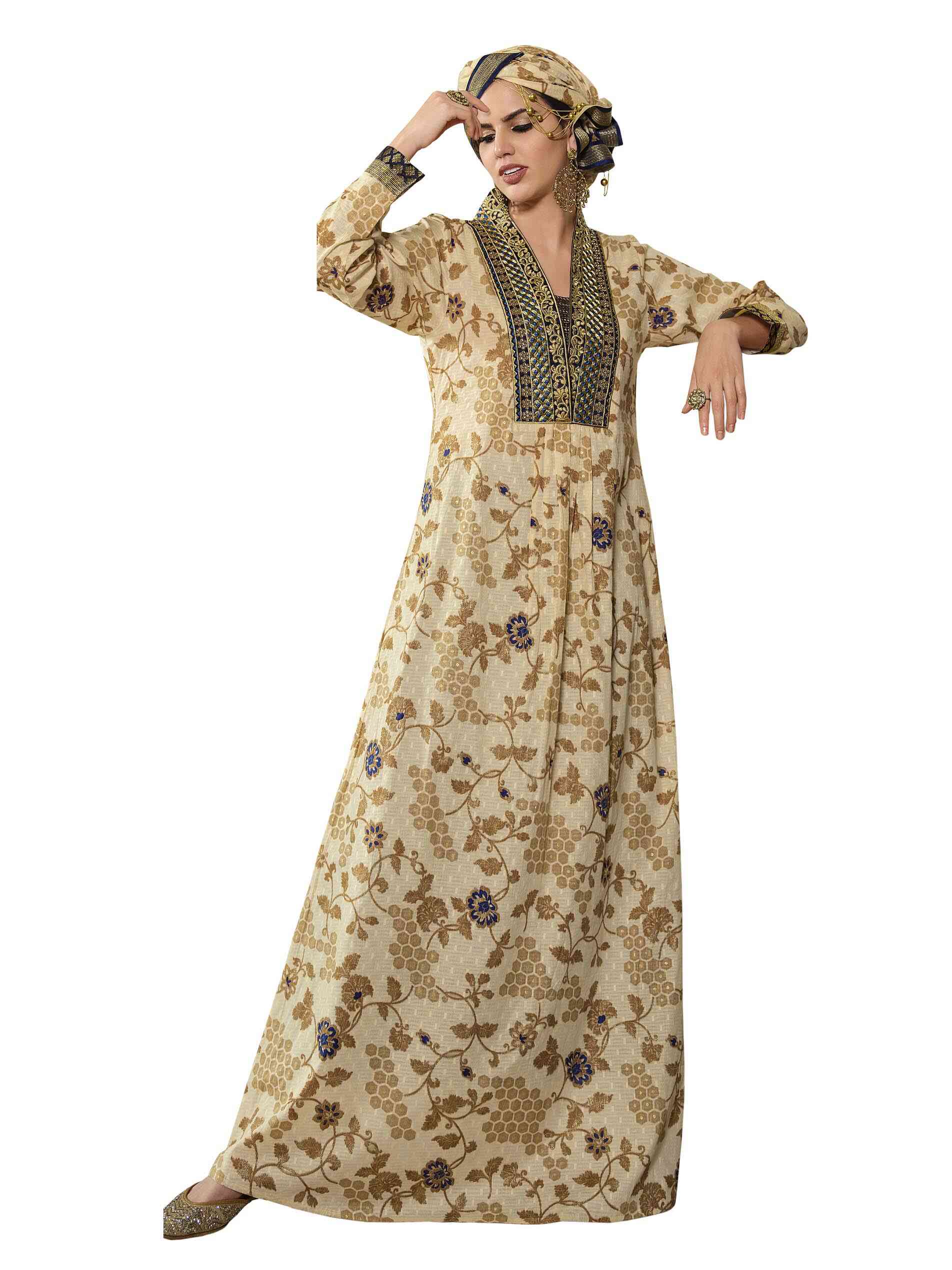 لا شيء يضاهي جلابية متعددة الطبعات باللون الكريمي في فصل الصيف! مصنوعة من القطن الخالص ومصممة بأكمام طويلة مع فتحة رقبة على شكل حرف V لتزيد من جمالك وأناقتك.