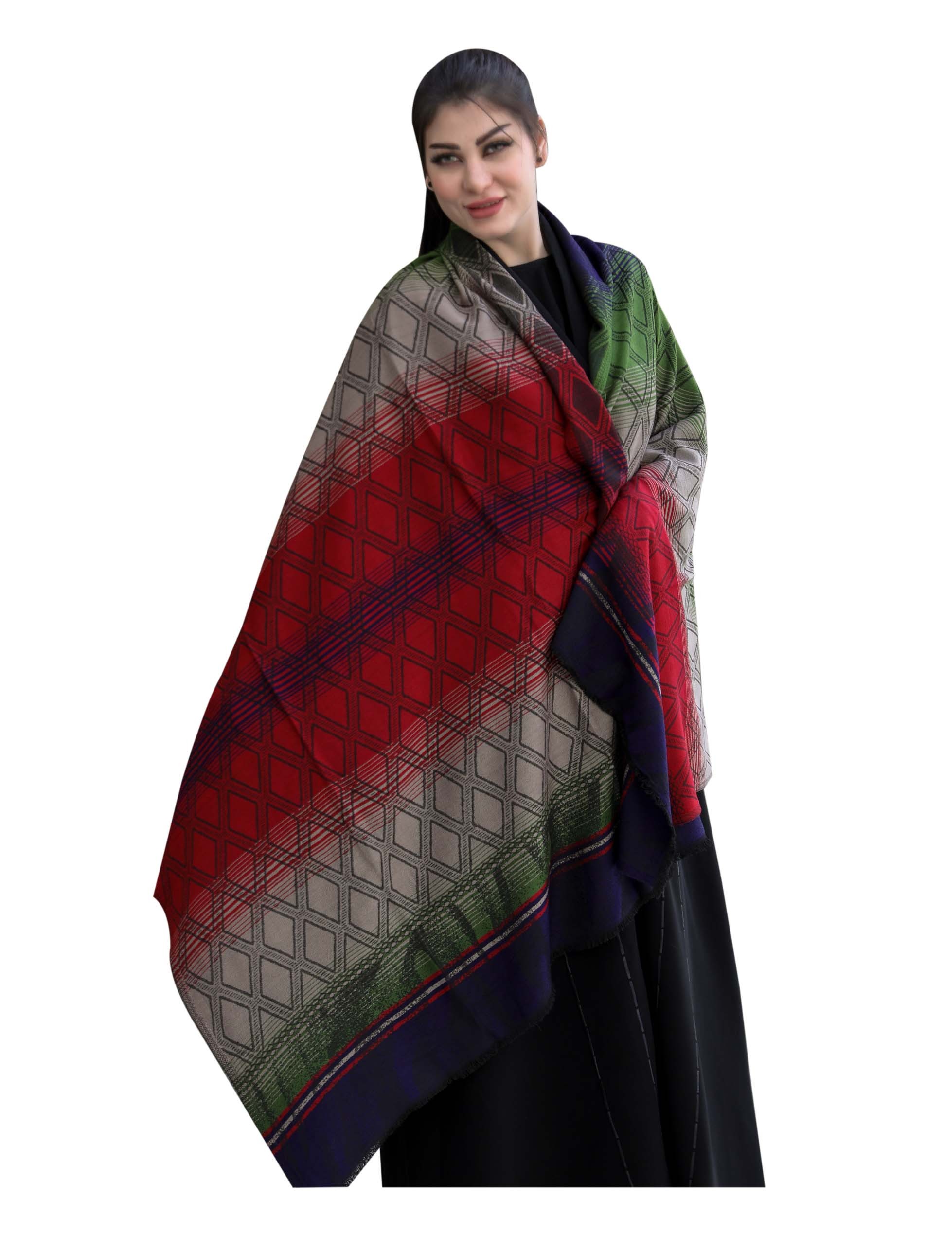 شال كشميري متعدد الألوان مصمم بطبعة هندسية مميزة ليمنحك الشعور بالتميز والدفء في الشتاء.