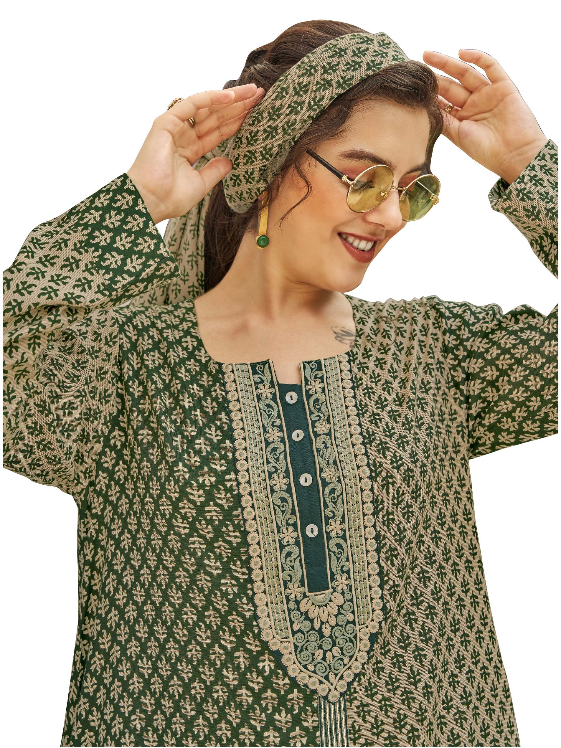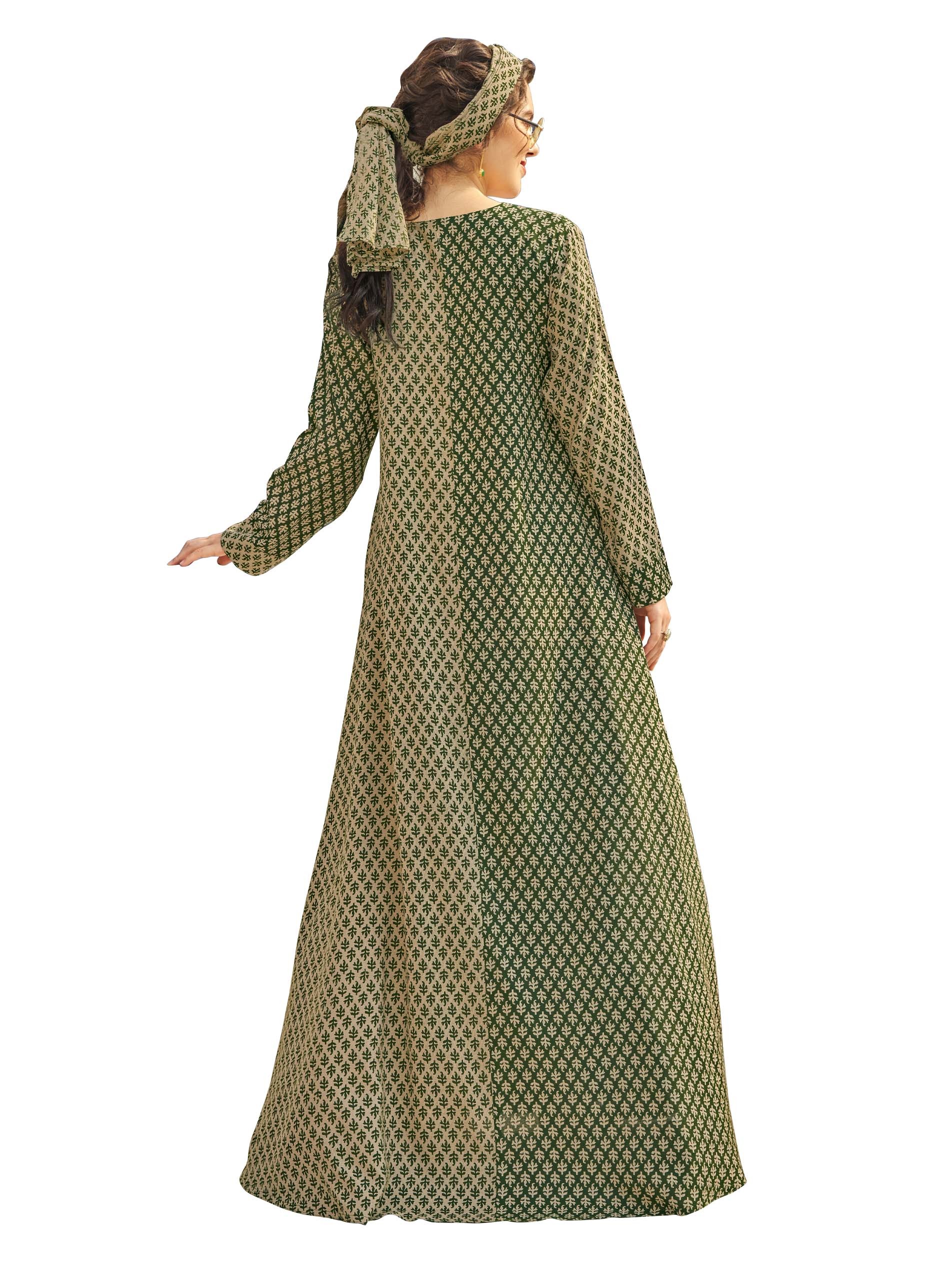 جلابية من الفيسكوز بقصة A-line مصممة باللونين البني الفاتح والأسود ومزودة بطبعة مميزة مع أكمام طويلة وأزرار أمامية