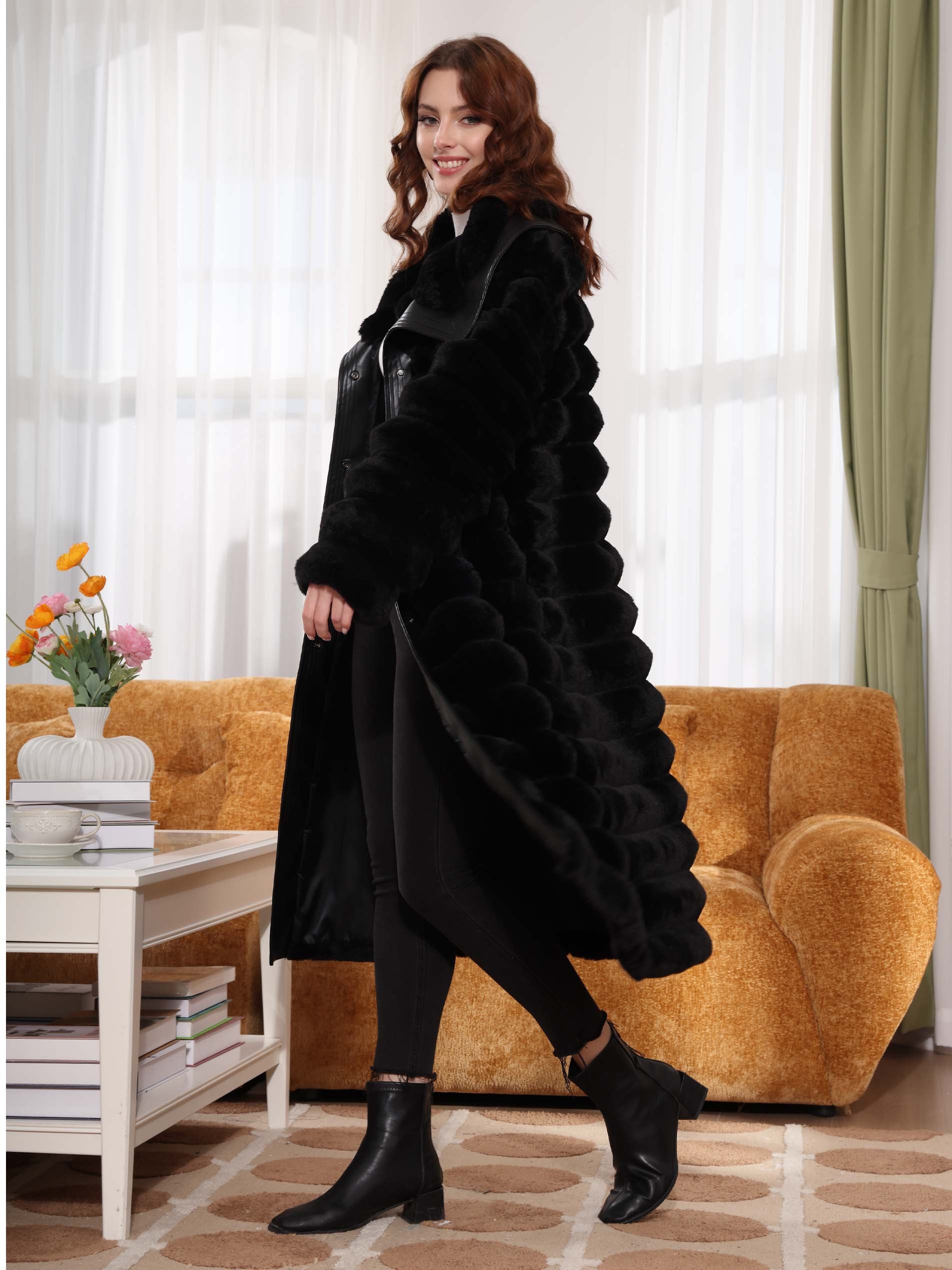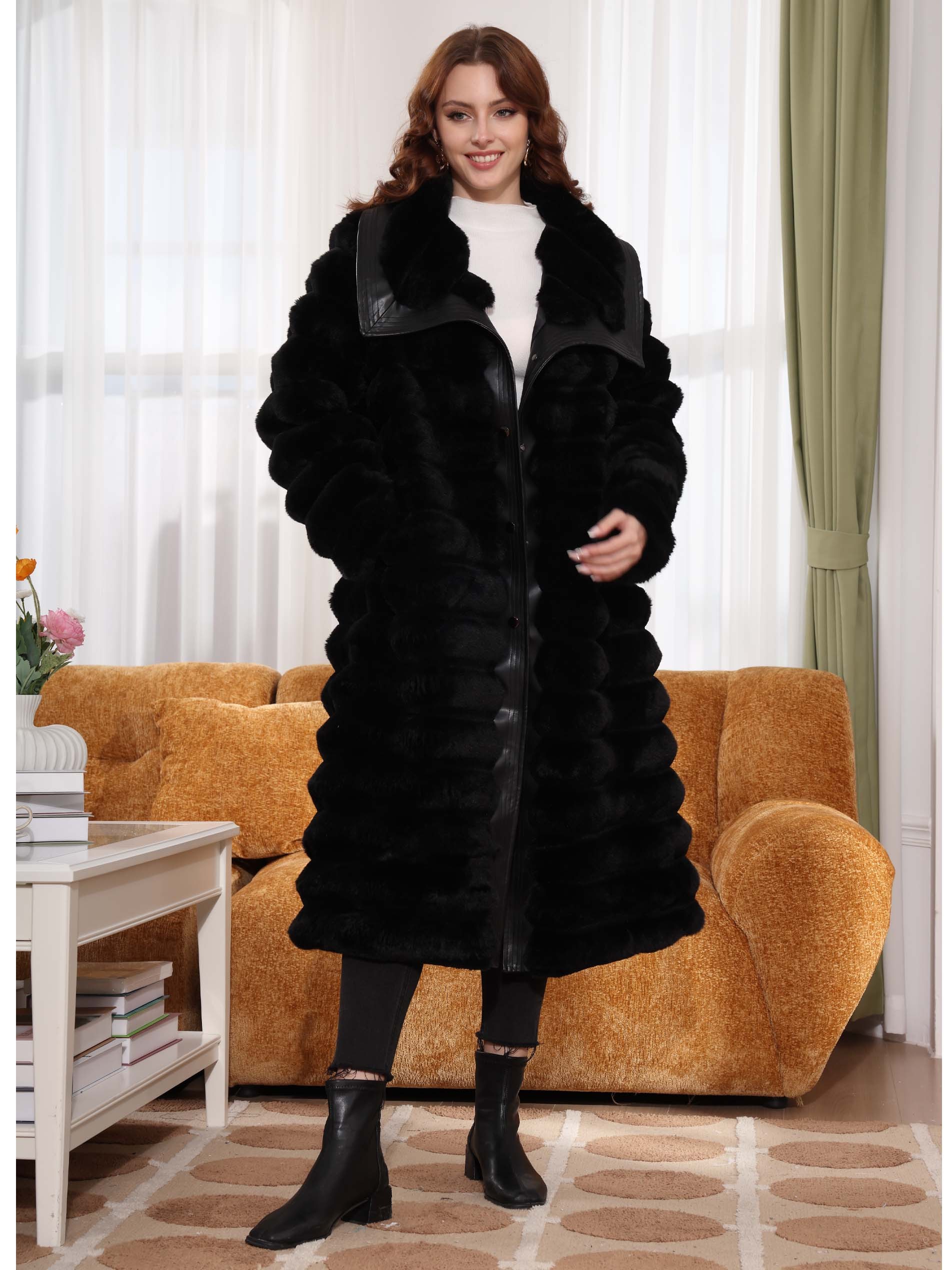 يبرز هذا الجاكيت بلونه الأسود ومزيج فريد من النسيج، يكمل تصميمه شغل متعدد بشكل مثالي. تضيف الألواح الأفقية عمقًا، مما يخلق جمالية منظمة، بينما تجعل اللمسات الجلدية على طول الياقة والجزء الأمامي من الجاكيت مثاليًا للمناسبات الاحتفالية. مصنوع من قماش قطن عالي الجودة، هذا الجاكيت واسع وبالتالي يضمن الدفء والراحة، مما يجعله مثاليًا لموسم الشتاء.