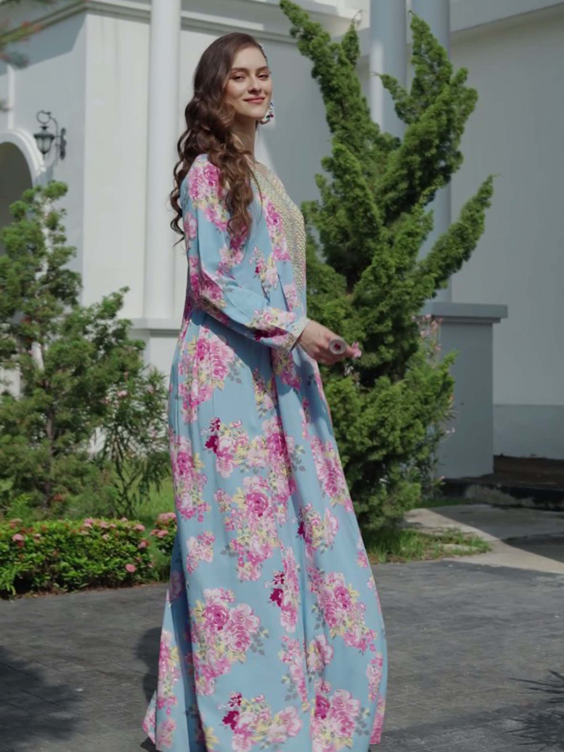 تتميز هذه الجلابية المصنوعة من القطن الرايون للأطفال بلون أزرق باستر مزينة بطبعات زهور باللونين الوردي والأصفر والأخضر، مع زهور صفراء ساطعة عند الياقة. توفر القصّة المُتَوَسِّعة ملاءمة مريحة، بينما يضمن القطن القابل للتنفس والأكمام القصيرة حرية الحركة للأطفال النشيطين خلال حفلات الصيف. يضيف تطريز الياقة لمسة ساحرة، مما يجعلها مثالية للاحتفالات غير الرسمية.