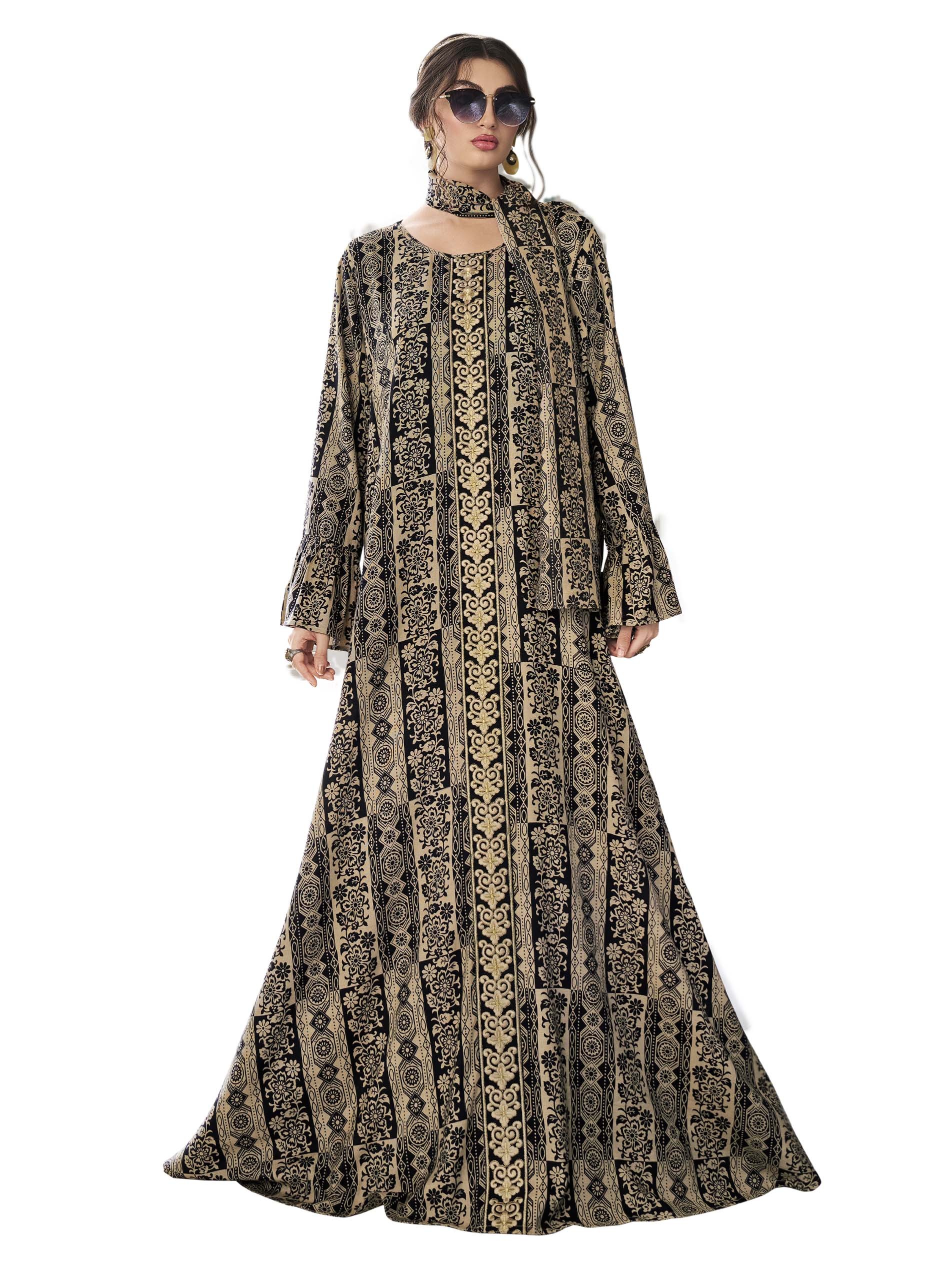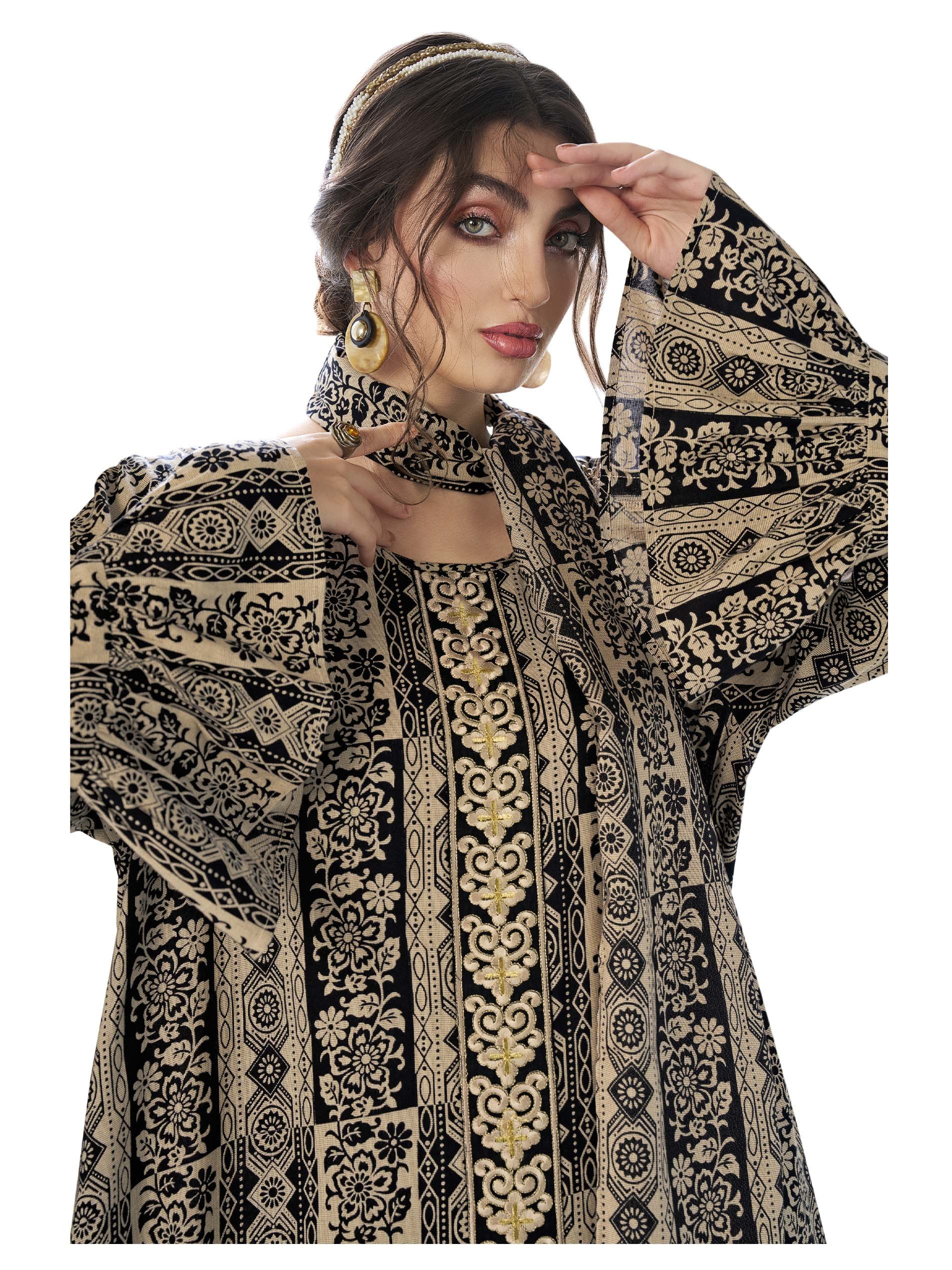 الأسود يليق بك! تألقي في هذه الجلابية القطنية الرائعة، مصممة بنقوشات جذابة من الزهور باللونين الأسود والفضي لتمنحك الشعور بالغموض والثقة!