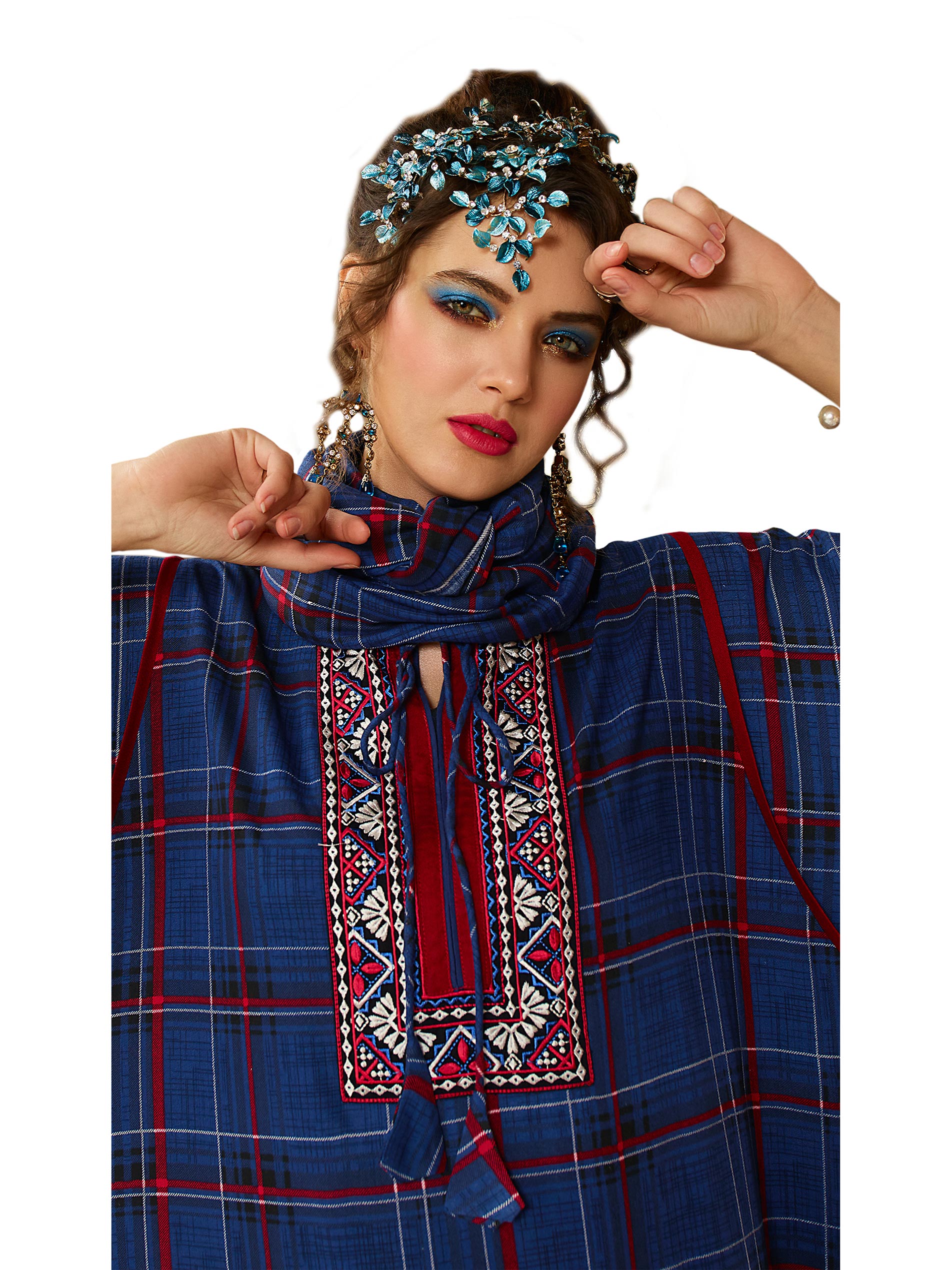 This one’s for those with a high taste surely. A stunning navy blue jalabiya with a collared neck creating a casual, smart and sophisticated look. Fancy sleeves and an A line-cut in plaid print on rayon to criss-cross summer in style that exudes cool and calm.