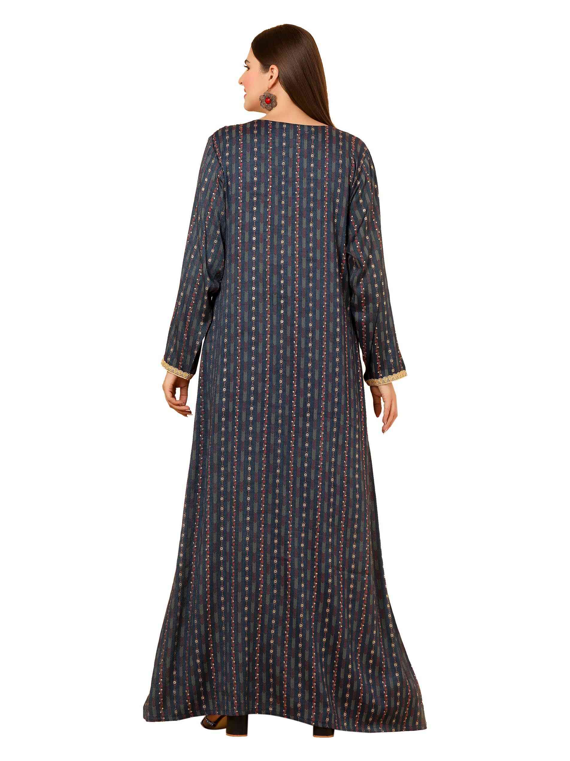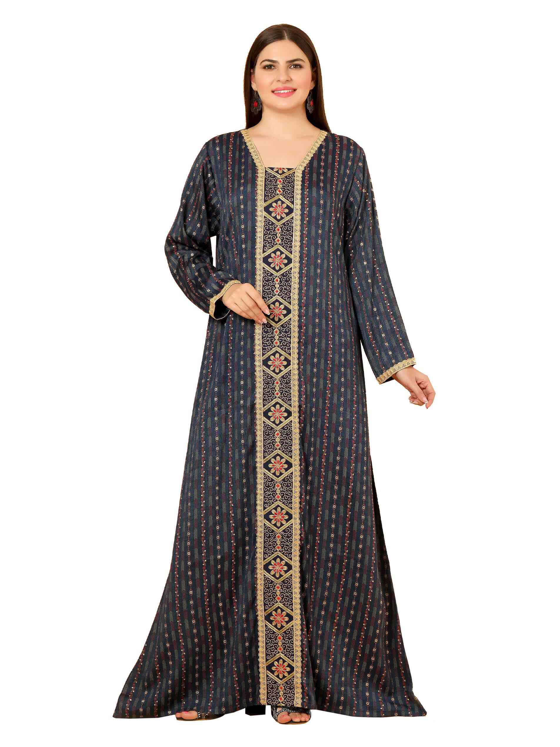 Certainly blue will be the colour of summer to keep you cool. A full length blue jalabiya in simple prints is a sure wardrobe essential to make you feel comfortable in a weather that demands an energetic vibe. Feel vivacious as you adorn a daraat in viscose and polyester styled in full sleeves, square neck and A line to combat the rising temperature.
