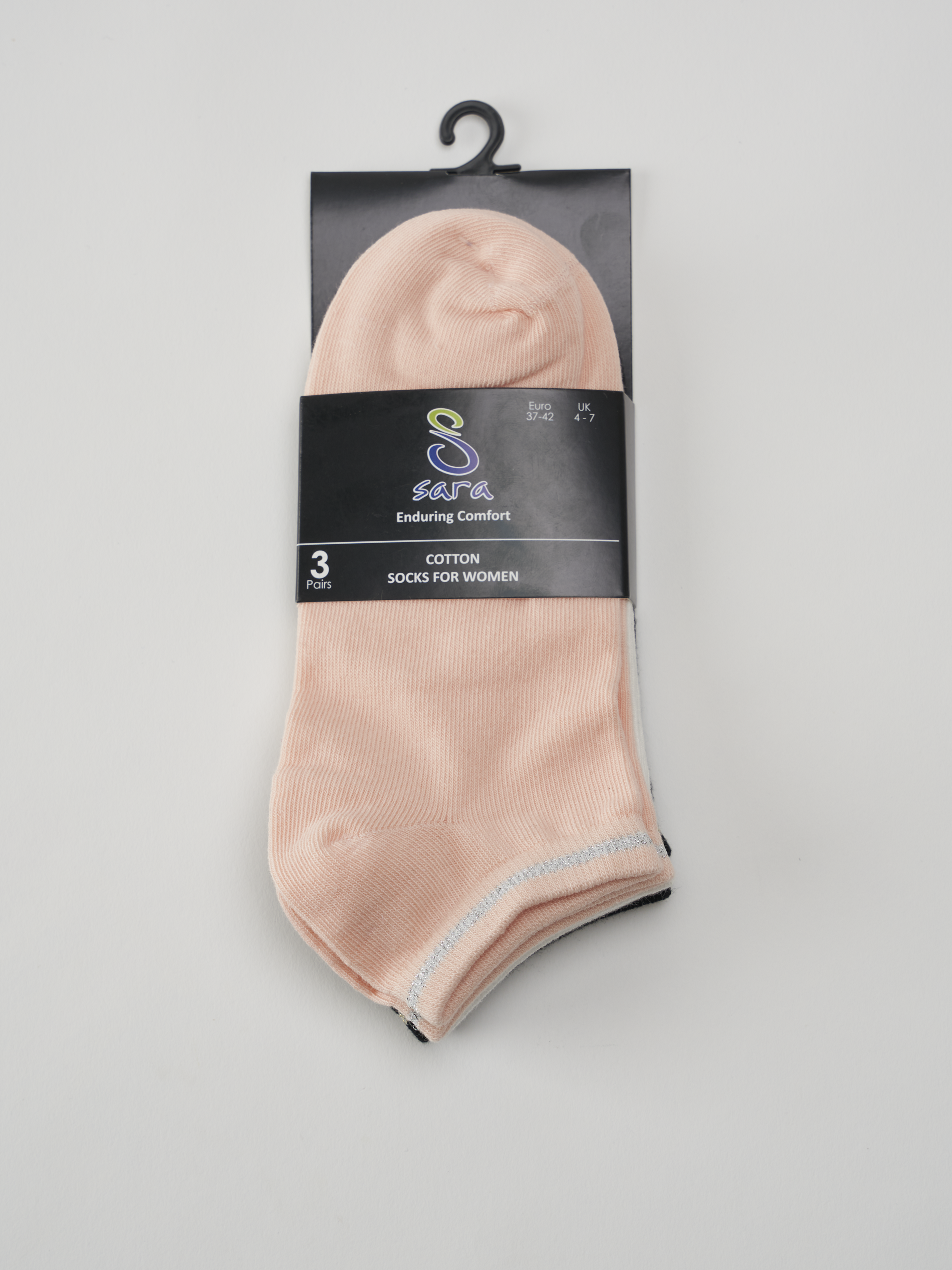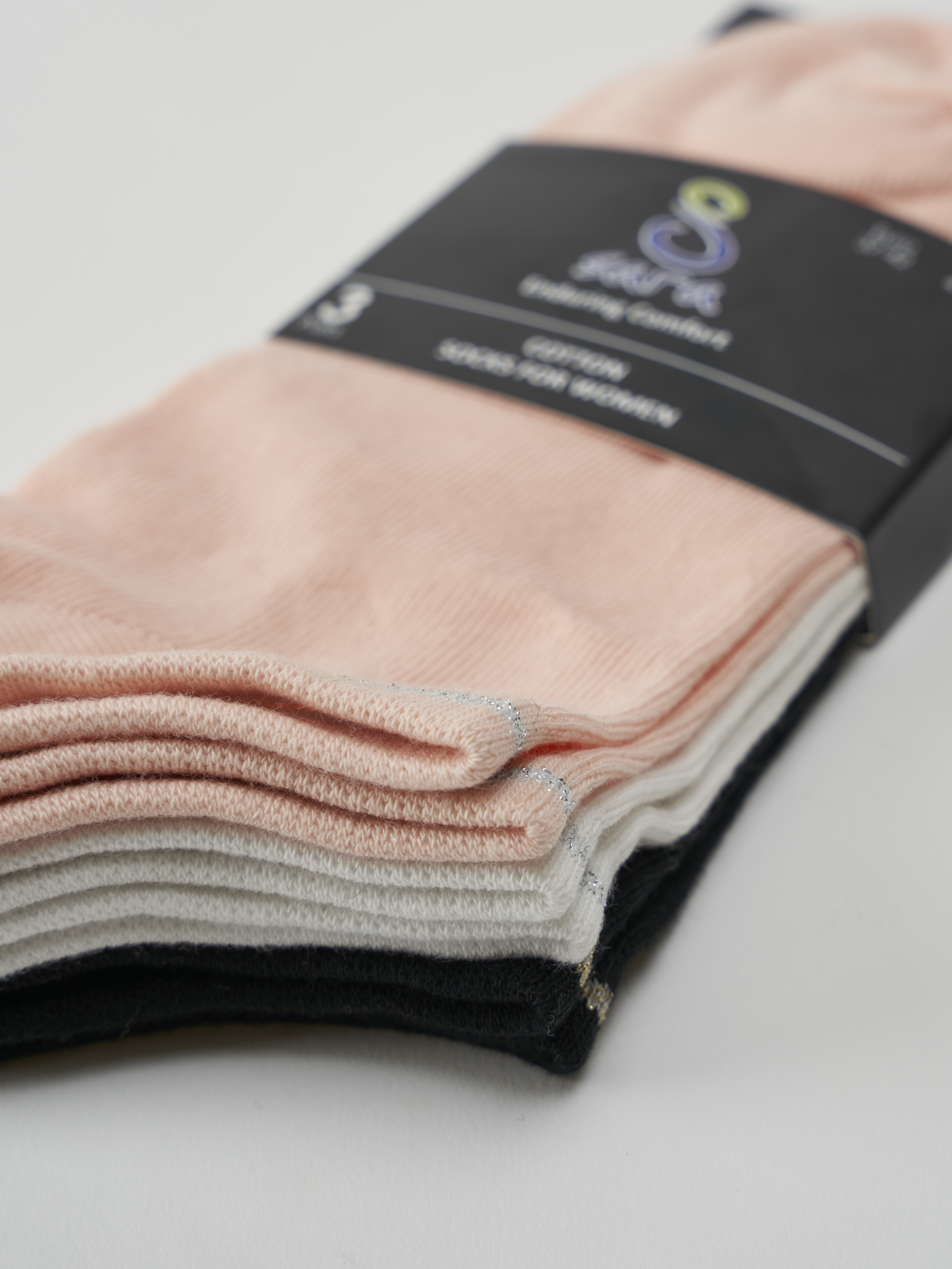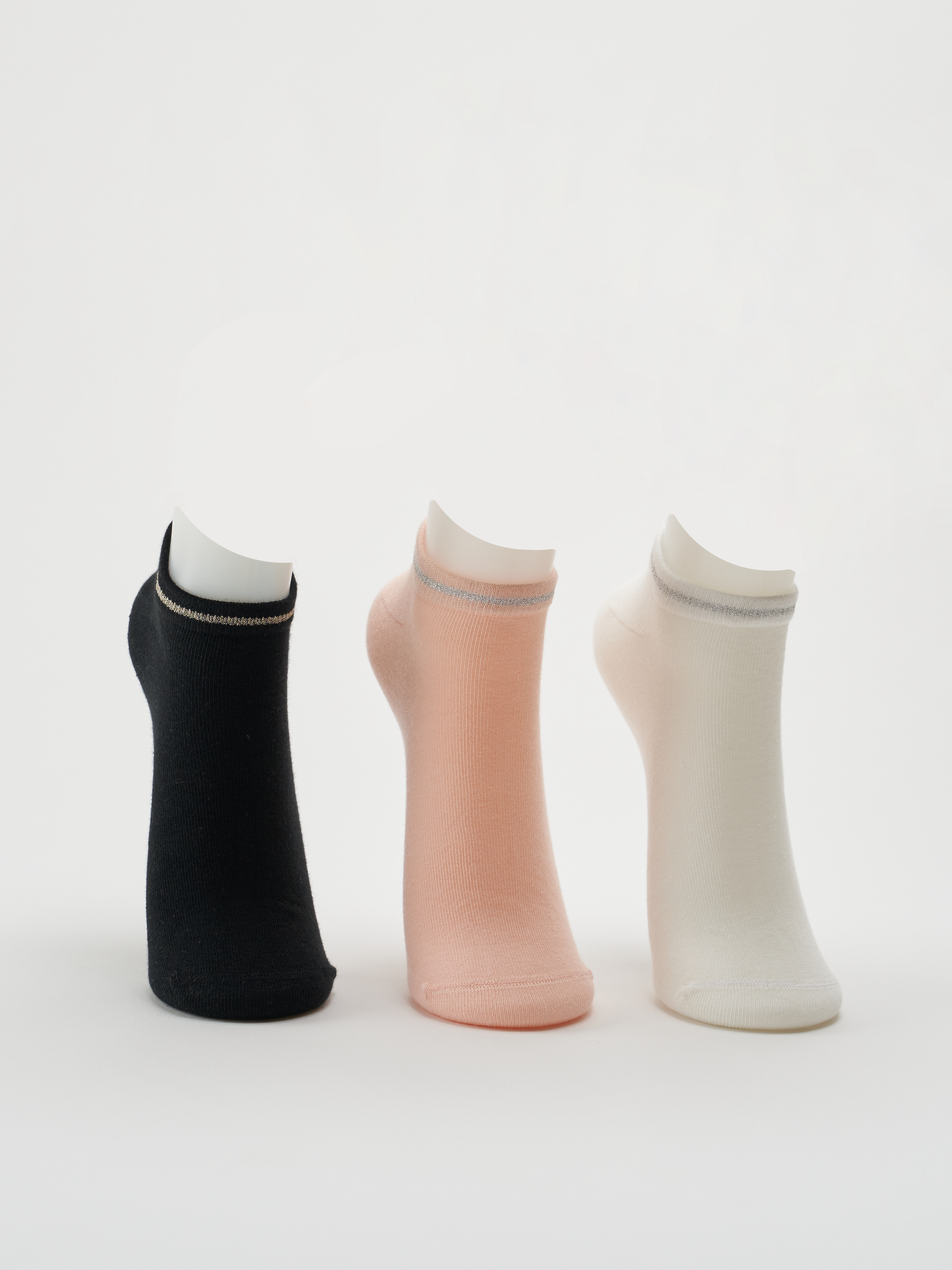 Cozy breathable cotton ankle socks with lurex border and elegant color mix (Pack of 3)