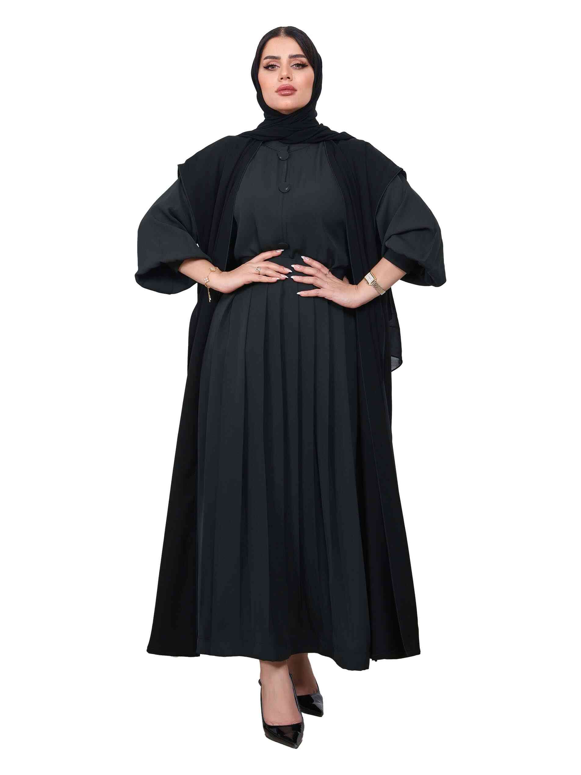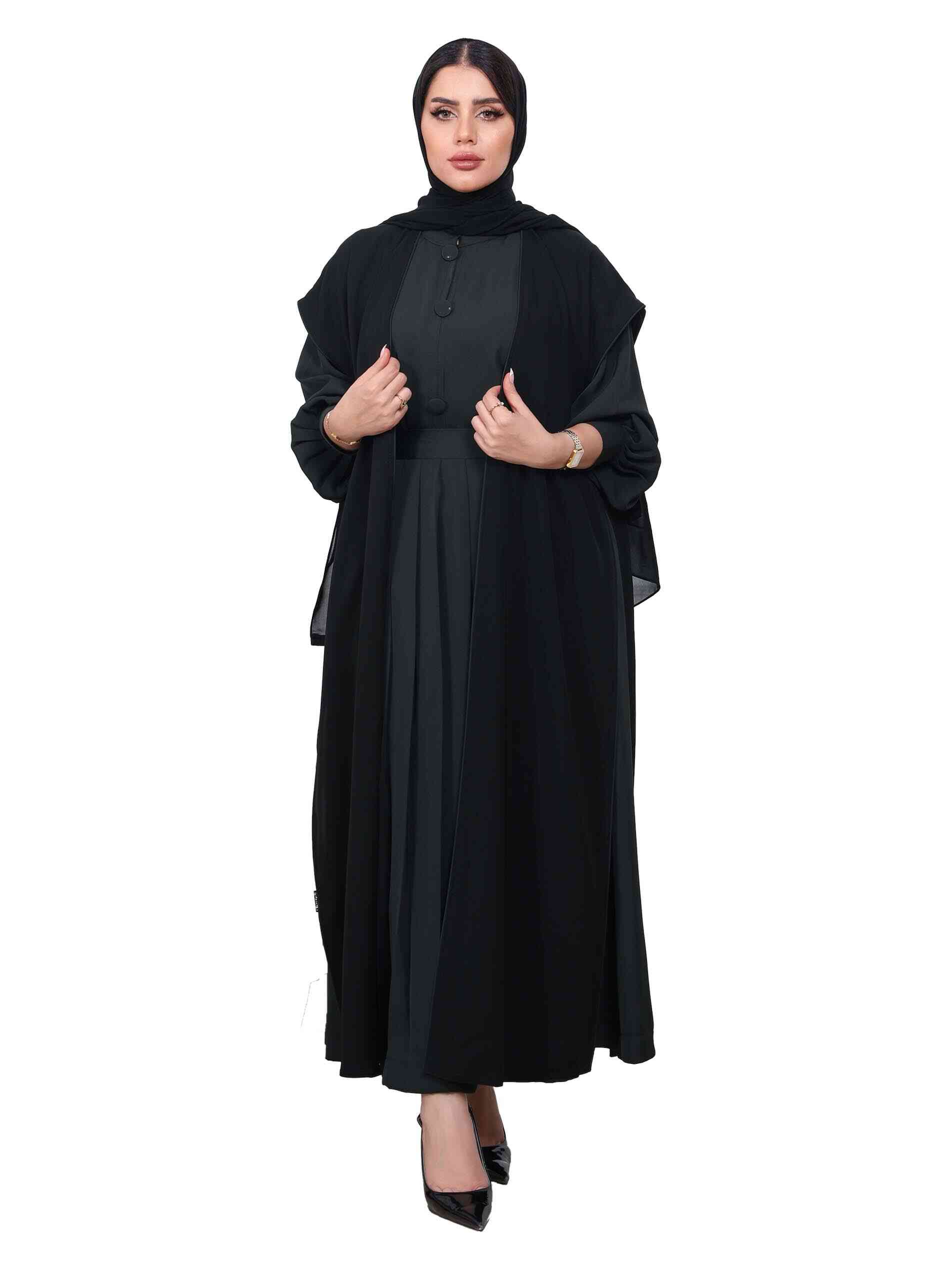 Be secretive yet submissive in a black and green inter-net full length abaya that is just right for your casual wear. While black expresses your darkest desires, the green paints your energetic side. It comes in an A line with a closed neck styling for a smart yet casual summerry look.