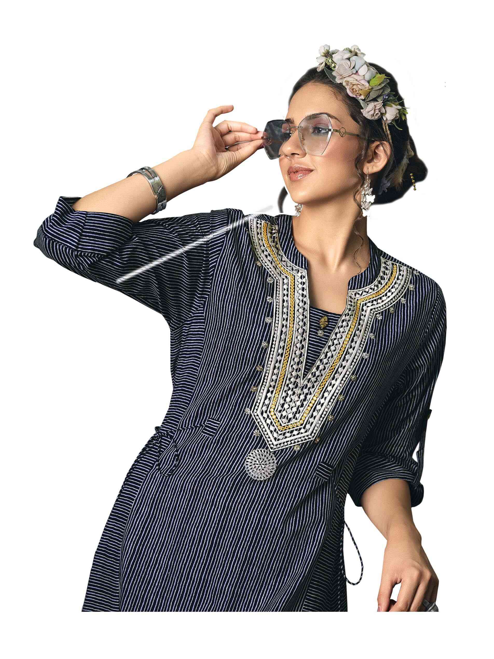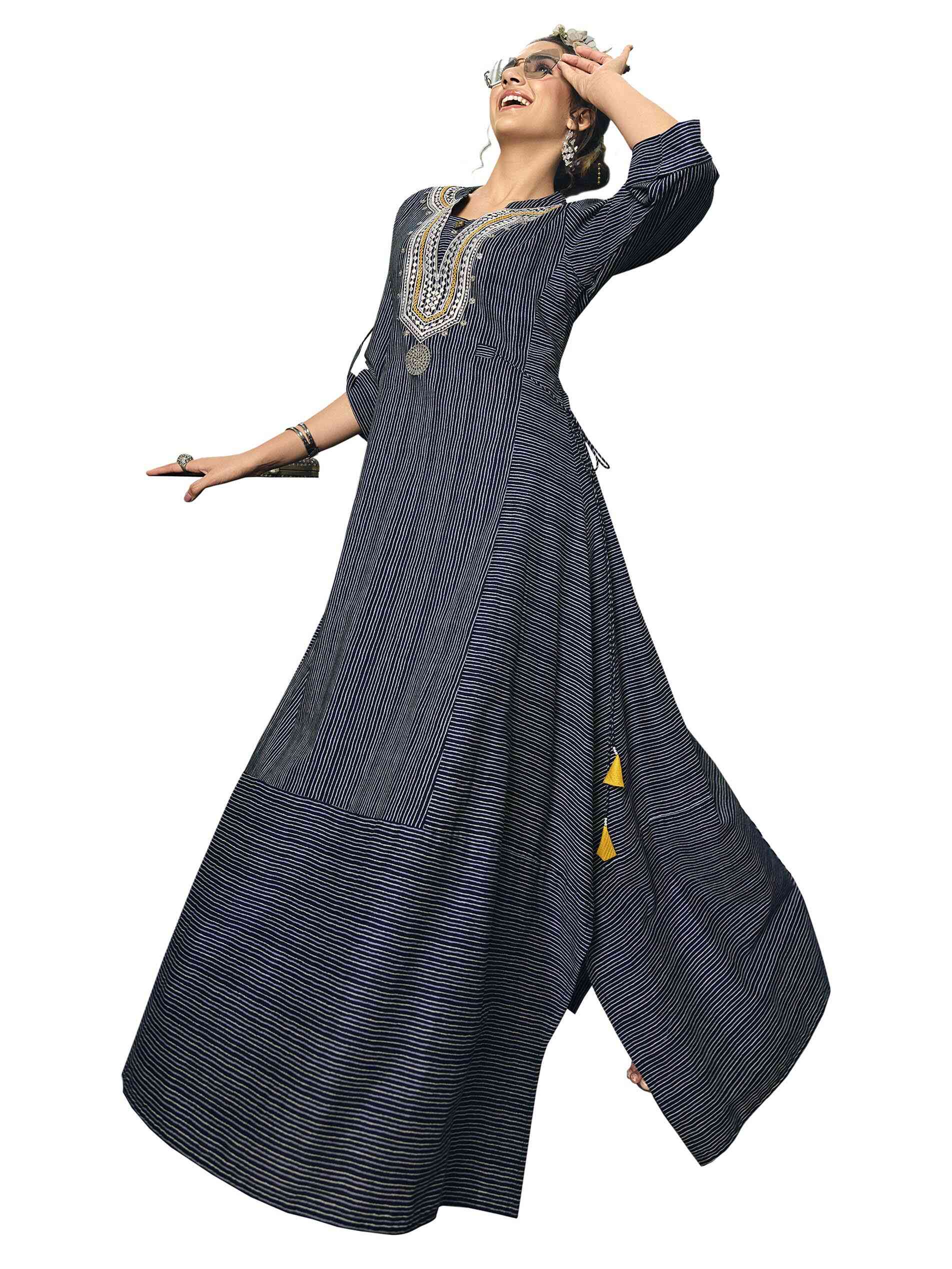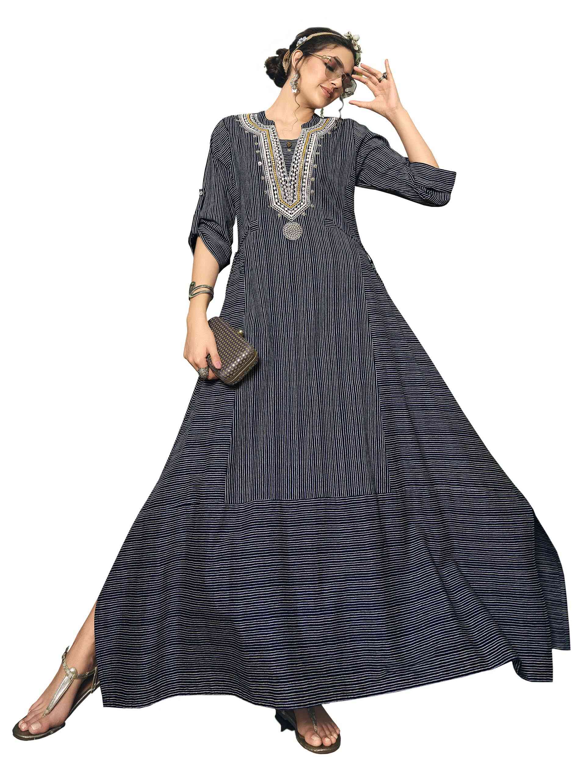 Discover the beauty of blue as you get engulfed in a cambric fabric full length flare jalabiya. The fantastic summer wear casual daraat looks smart and stylish with a square neckline and flared hemline. The square neckline is accentuated with lovely embroidery to cast a touch of elegance; half sleeves look just right to go with the pattern.