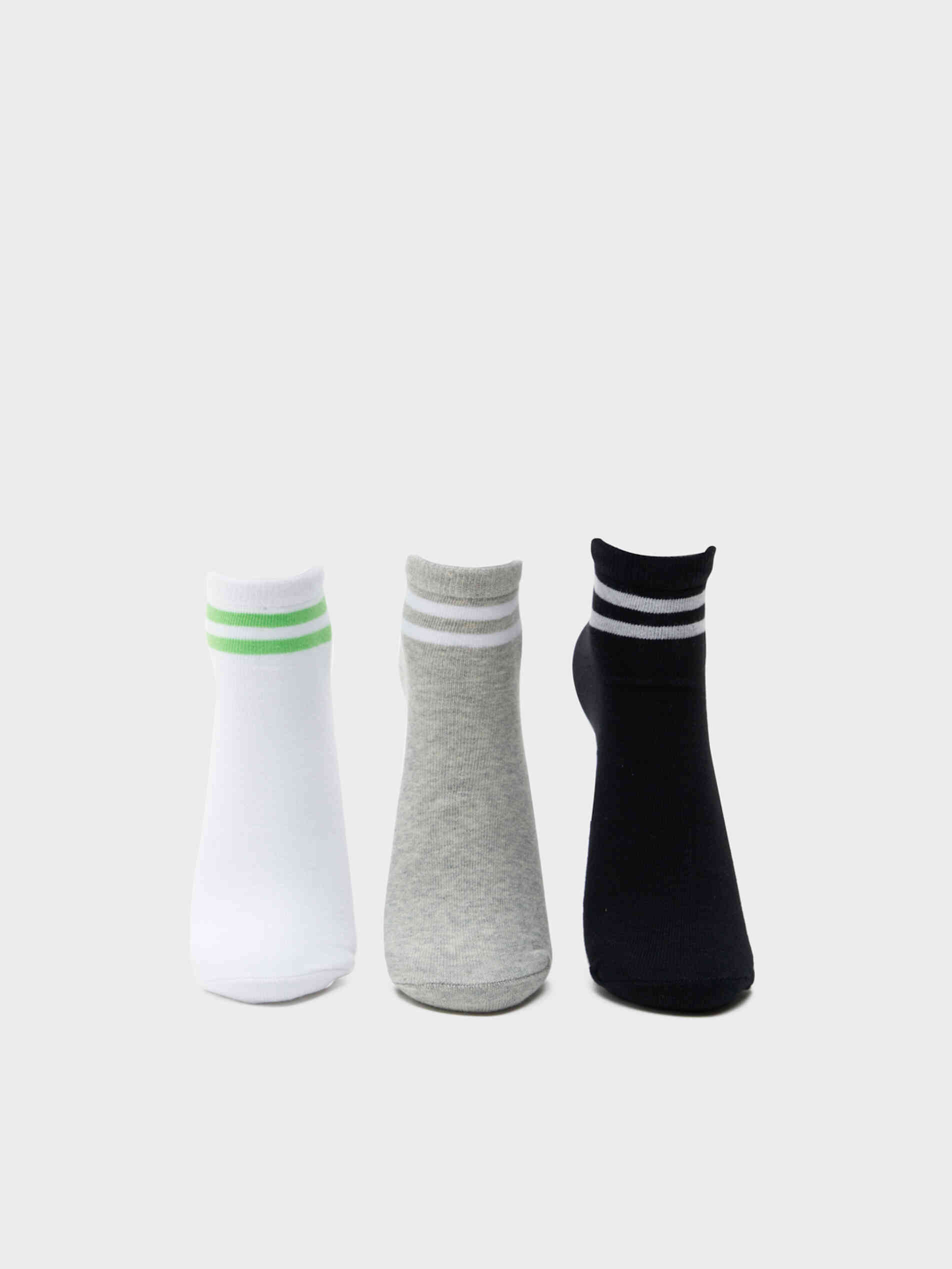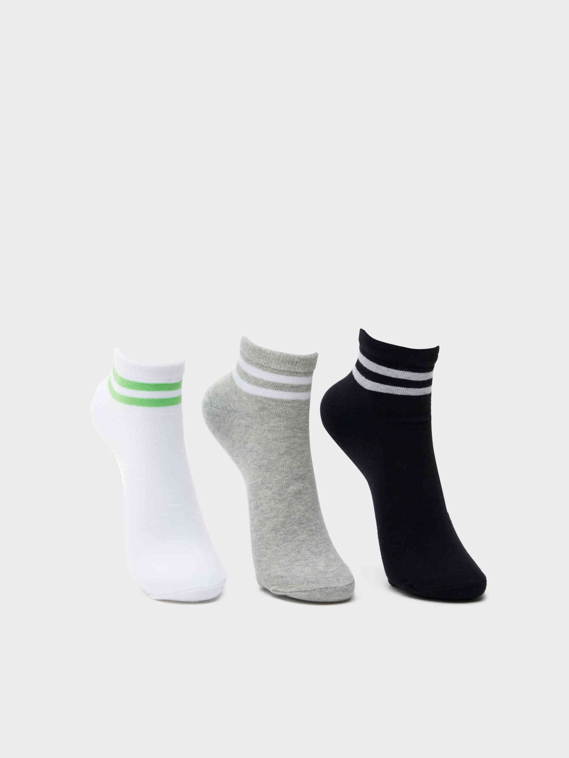Breathable cotton light weight ankle length socks with contrast stripe border. (Pack of 3)