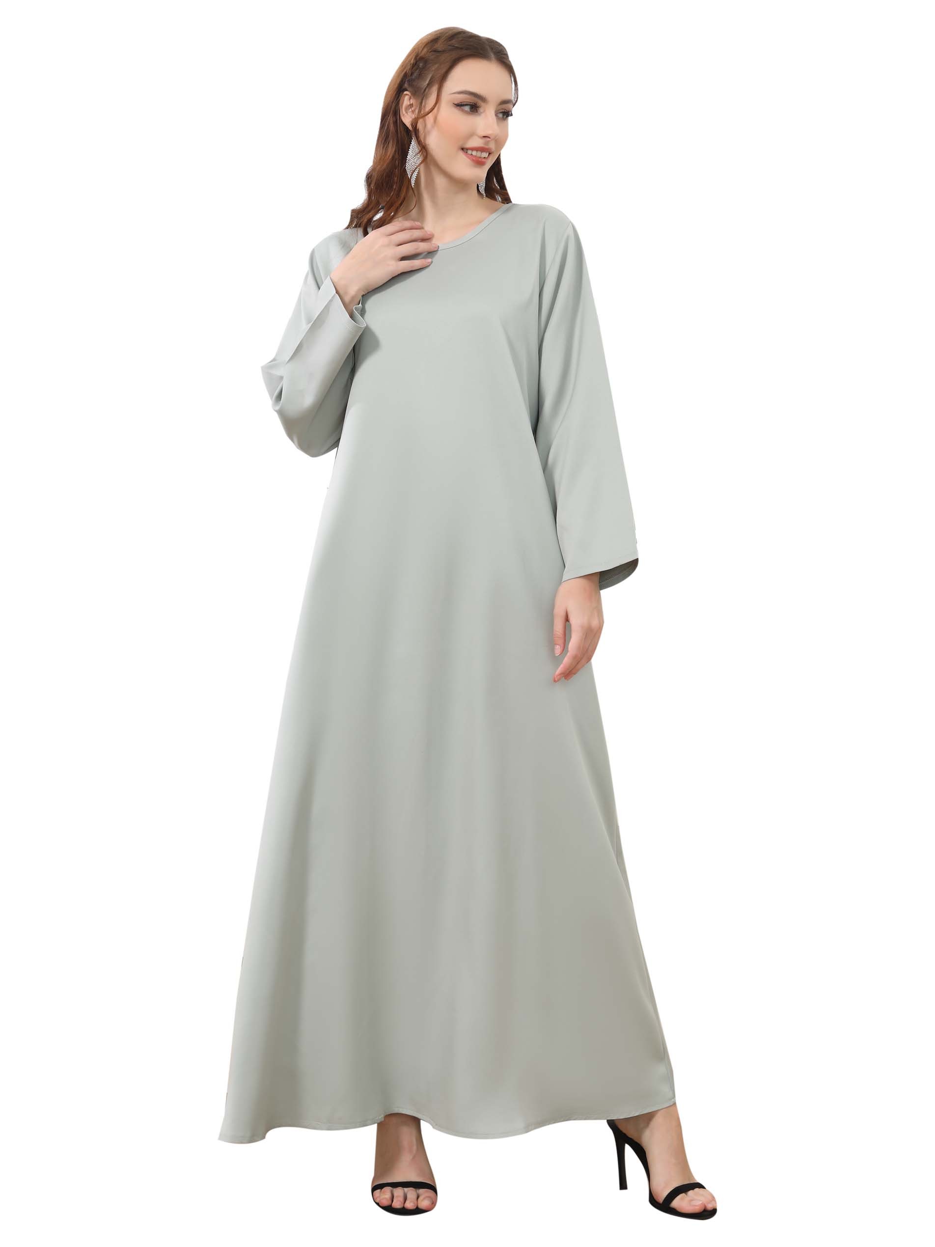 Adorn yourself in a long-sleeve gray cotton jalabiya for a simple & elegant look in casual occassions.