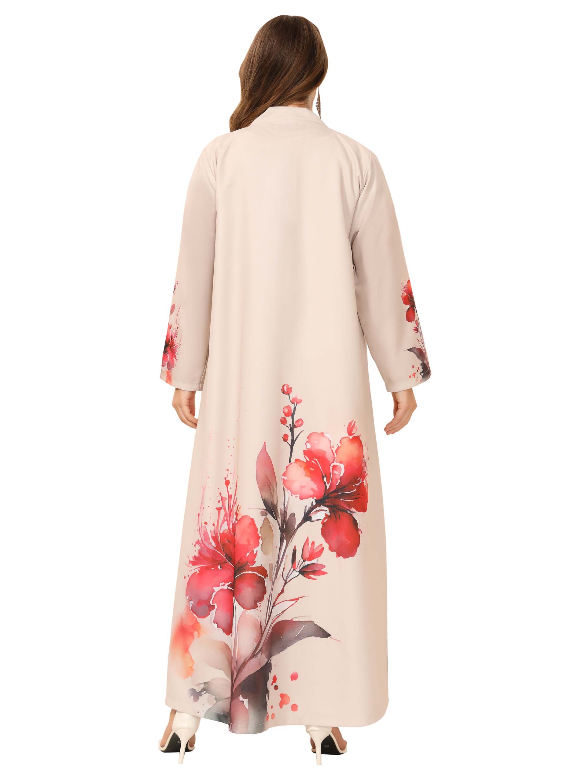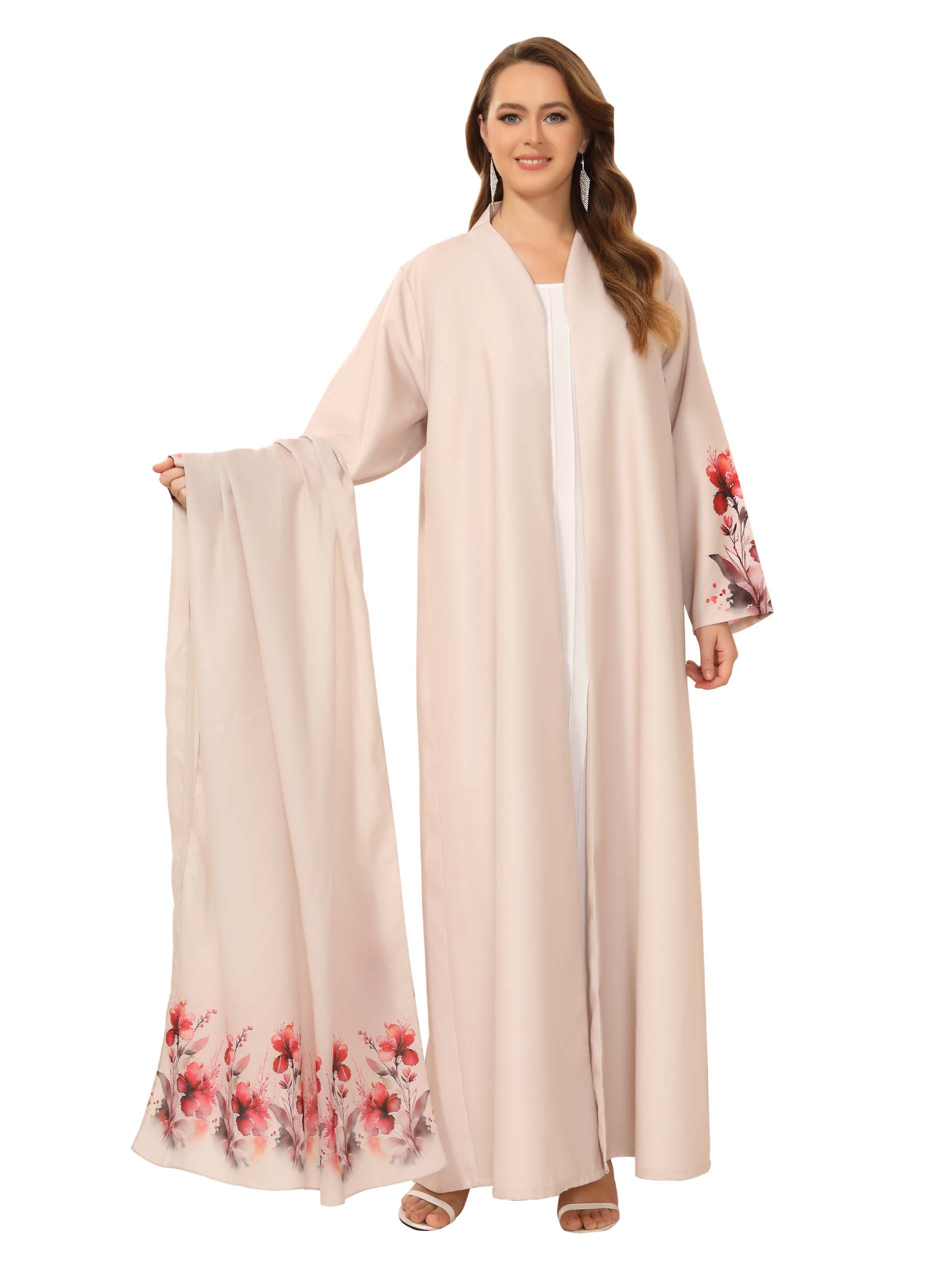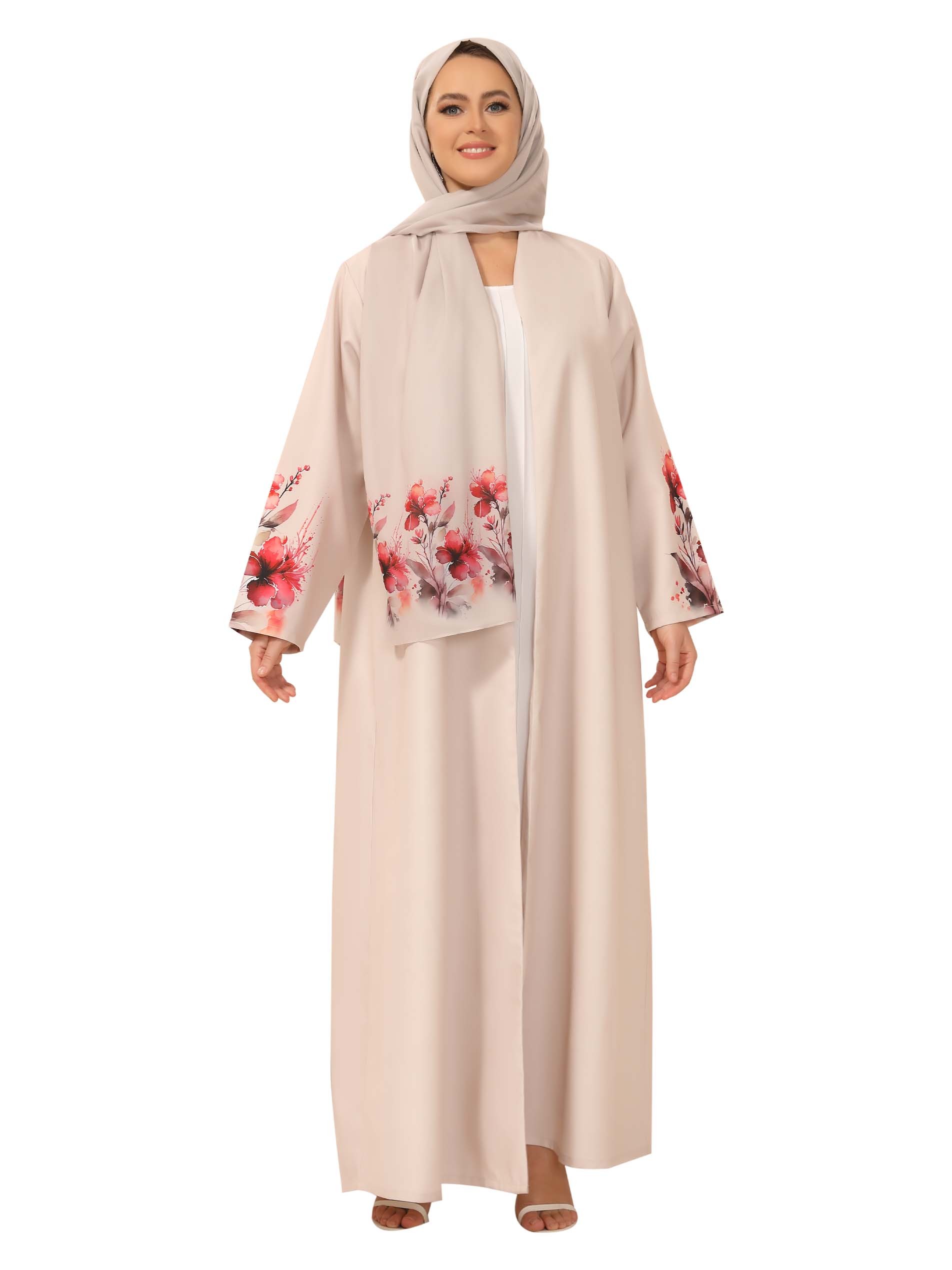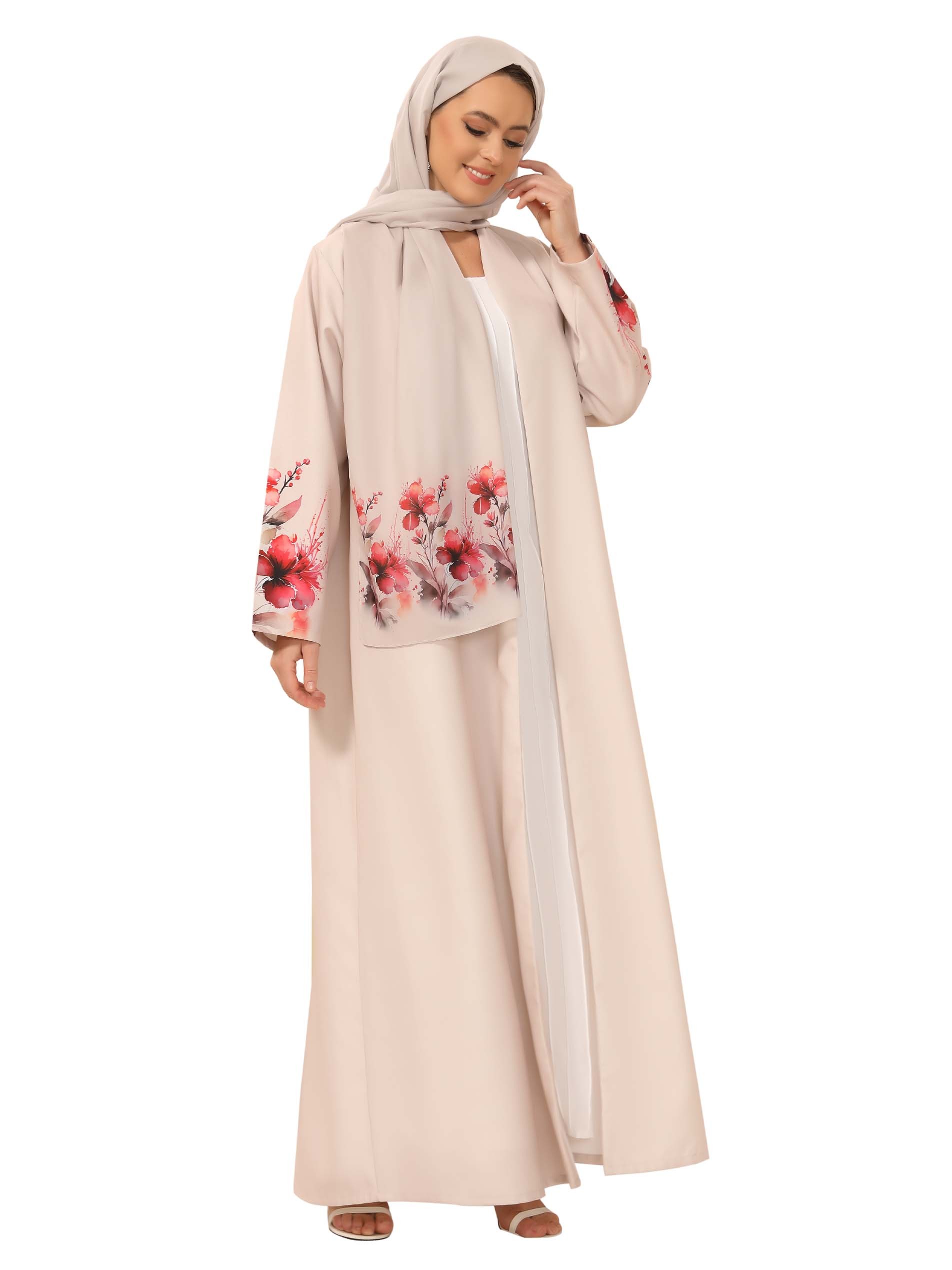 With it's beautiful floral style on the shoulder, this beautiful linen rose abaya will set you apart and draw attention wherever you go!