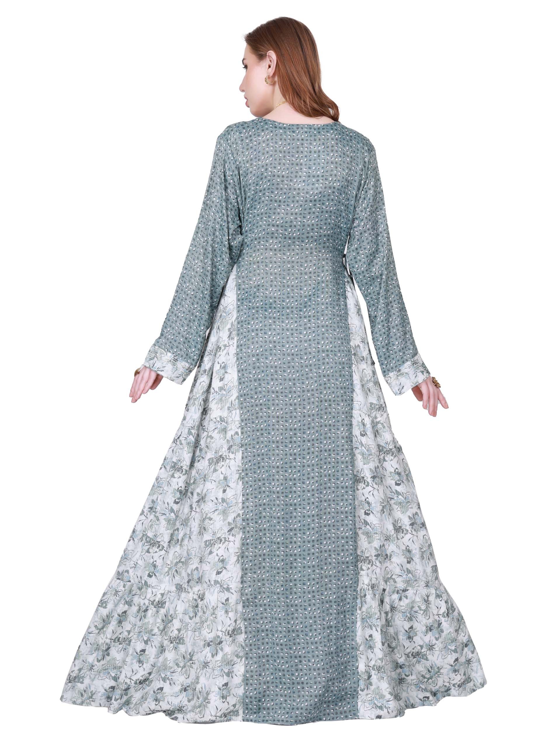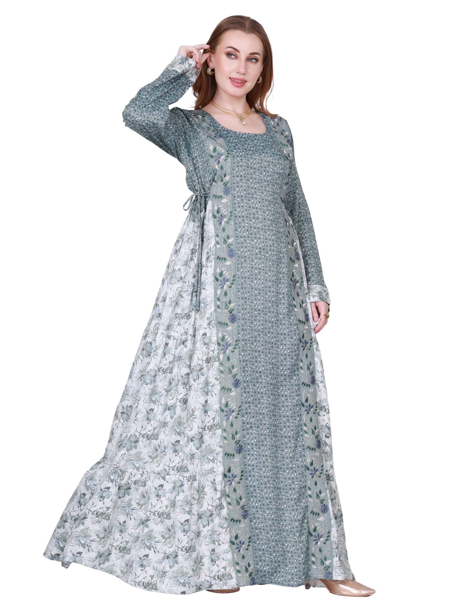 Our gray & white printed maxi cotton jalabiya is designed with floral print to provide you with a timeless piece that feels just as dreamy as it looks.