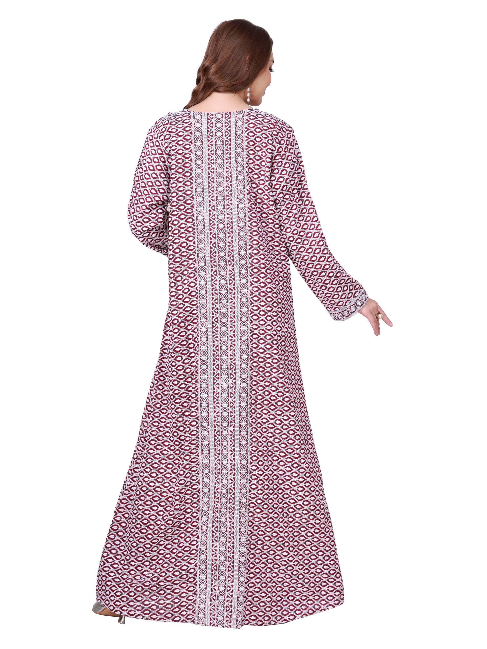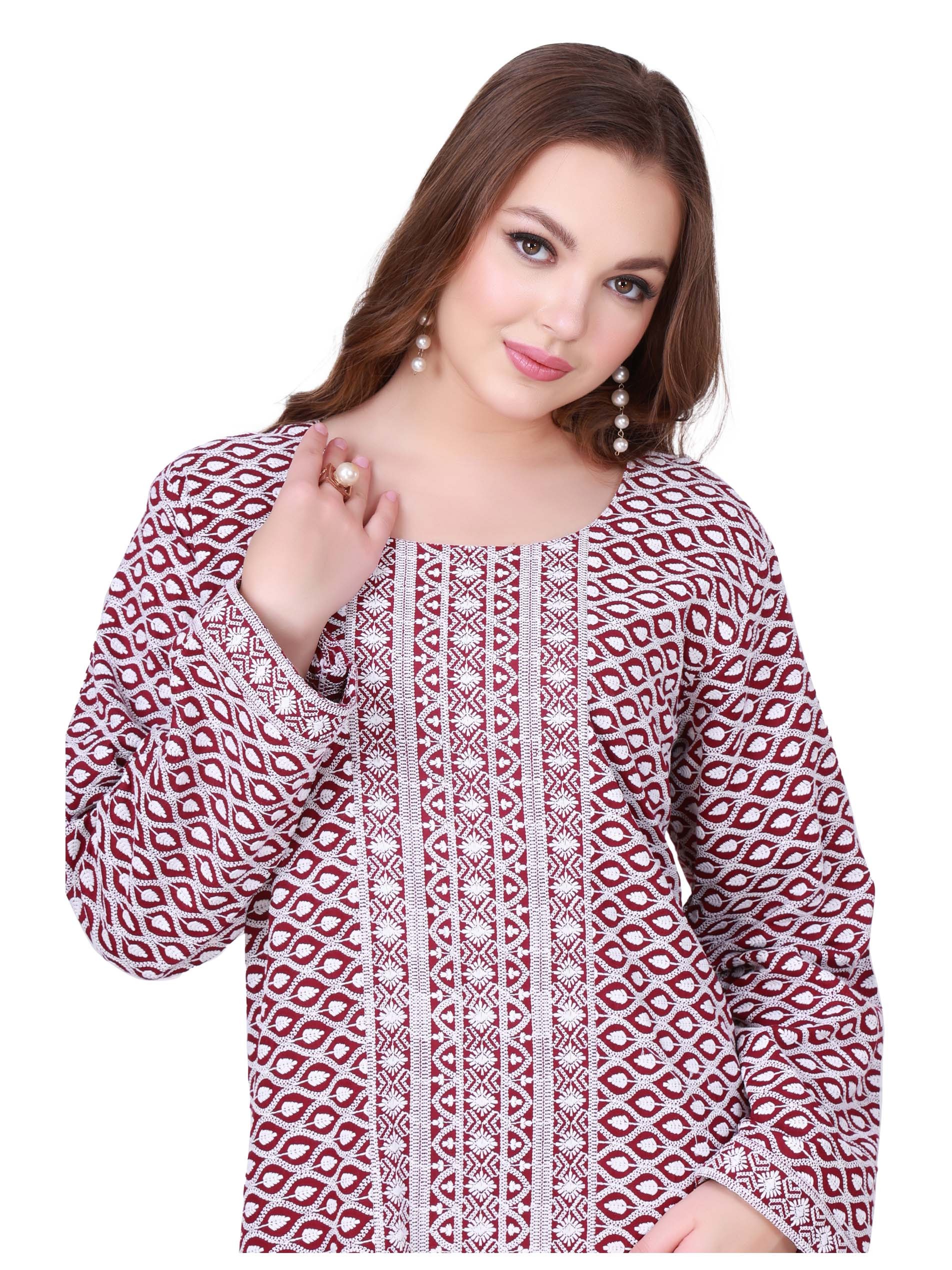 Deep maroon meets dazzling white embroidery. This is your statement outfit for the summer season.