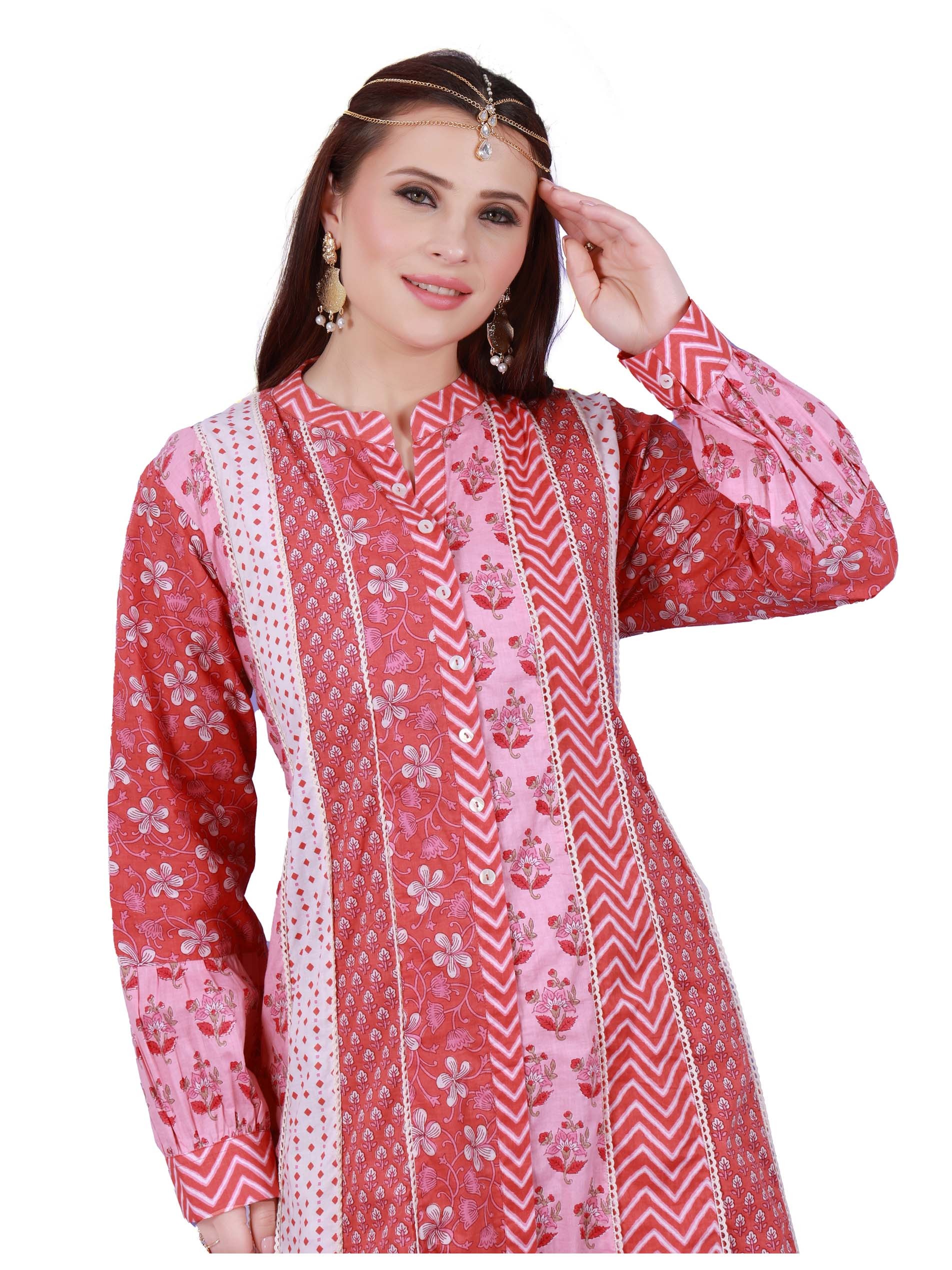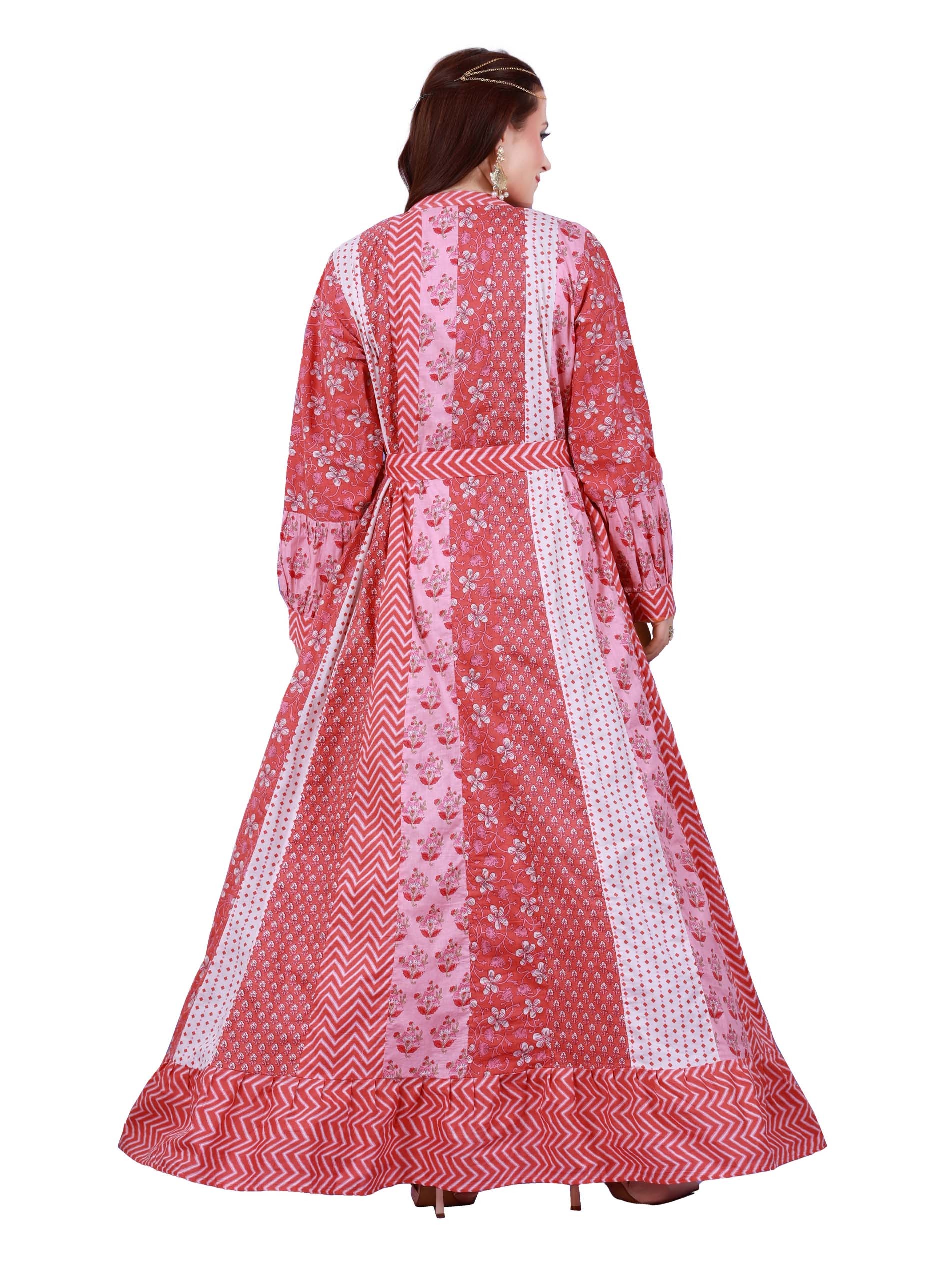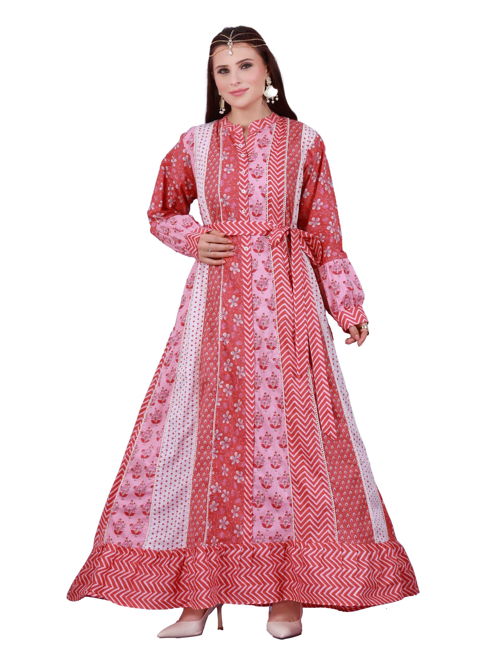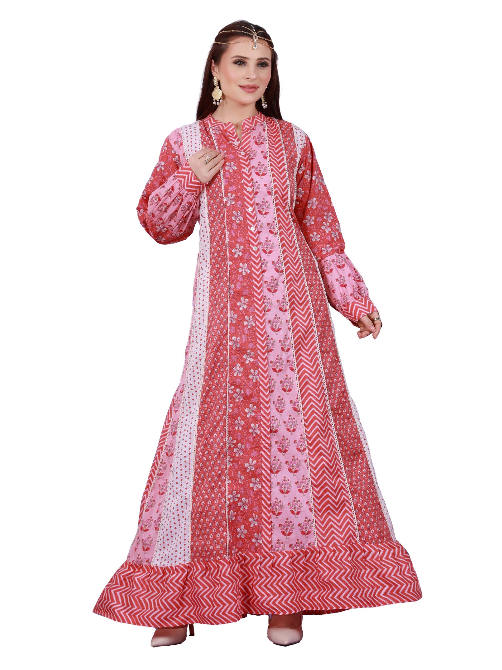 Ready to steal the show? Our pink maxi jalabiya is your go-to for effortless glam. Its delicate diversified patterns & tie details on the waist will give you the perfect blend of elegance and comfort.