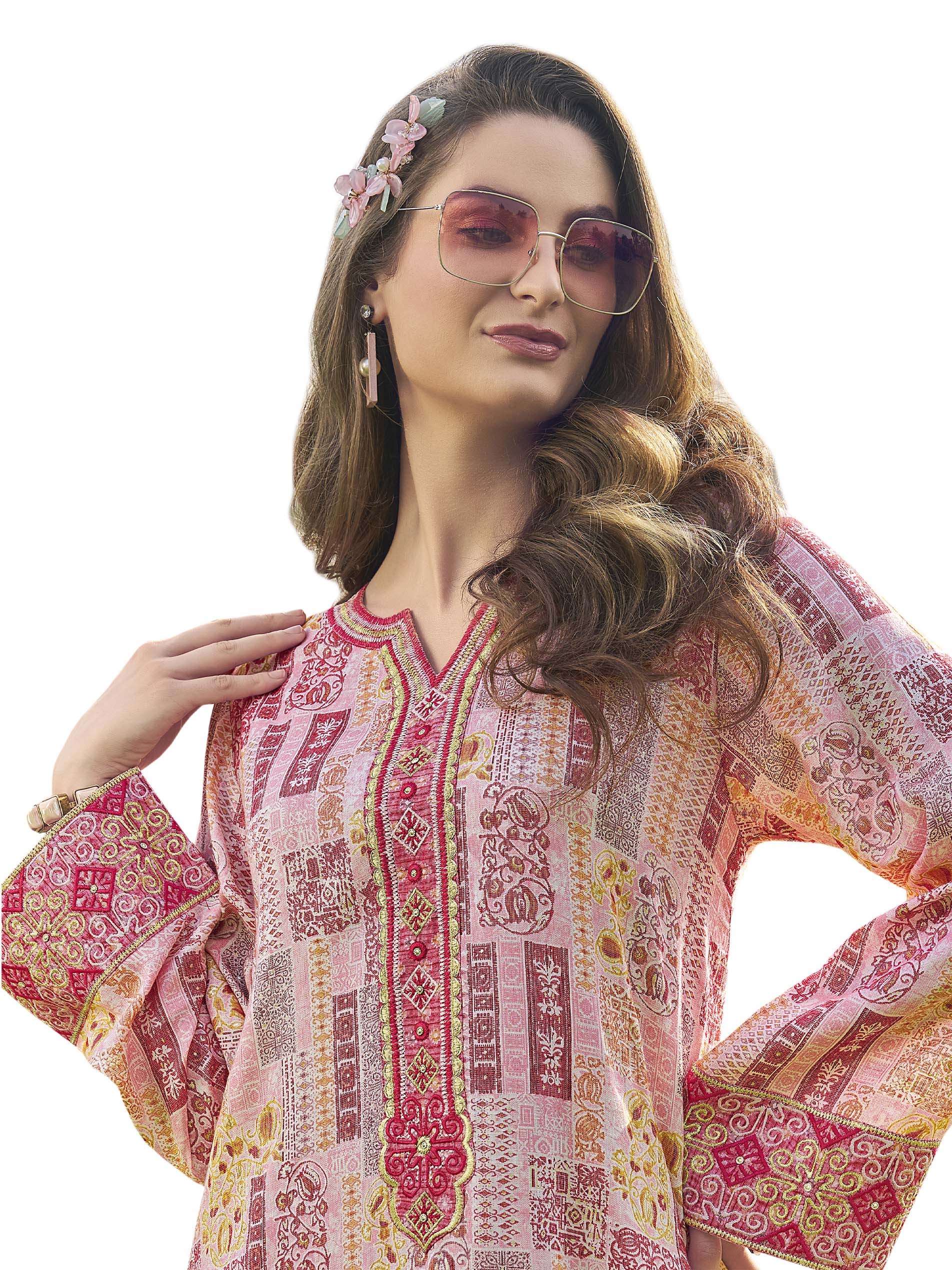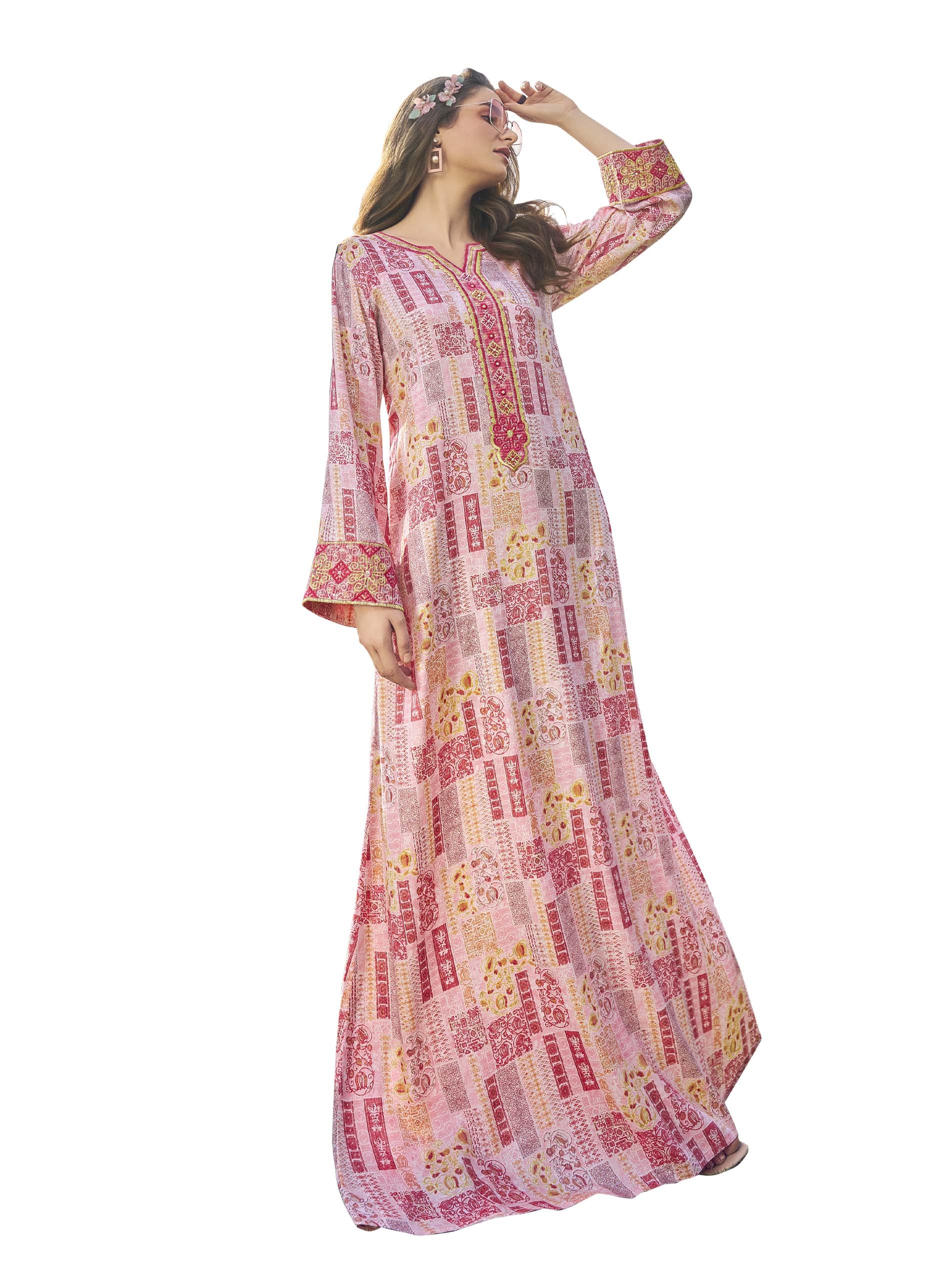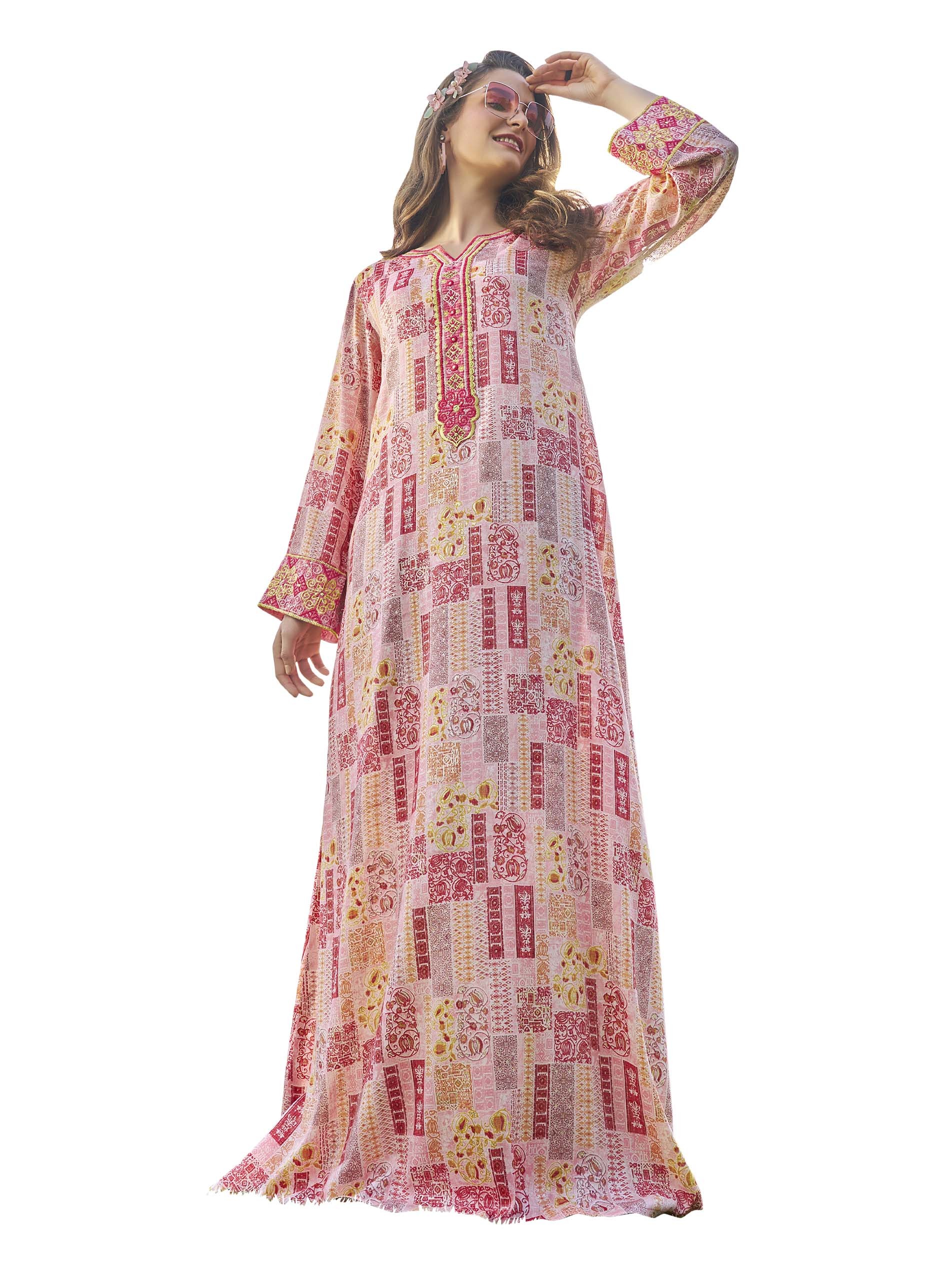 Shine is this casual jalabiya, designed with a distinctive & cheerful print that comes in pink color with a touch of yellow to give you a sense of distinction this summer.