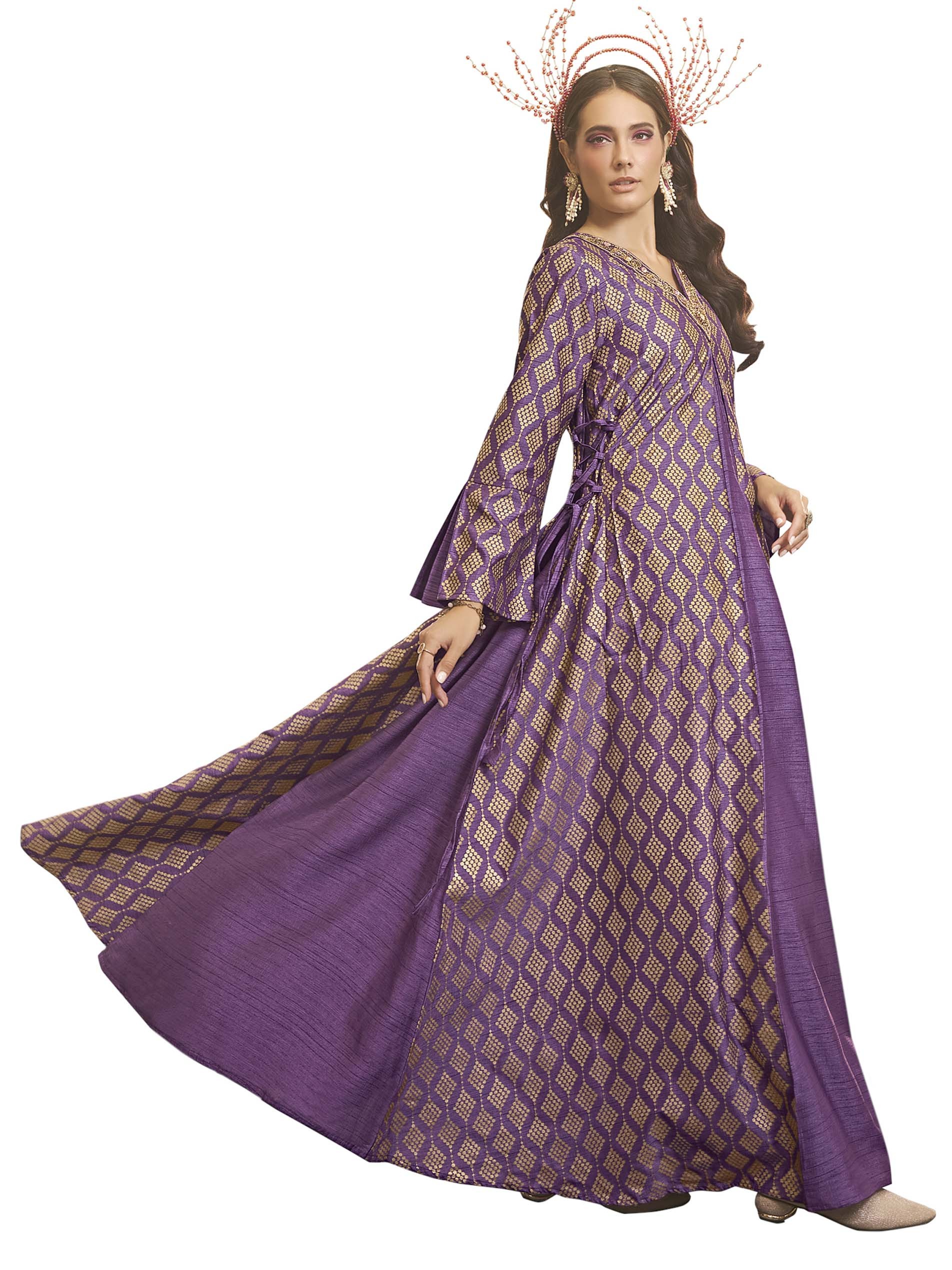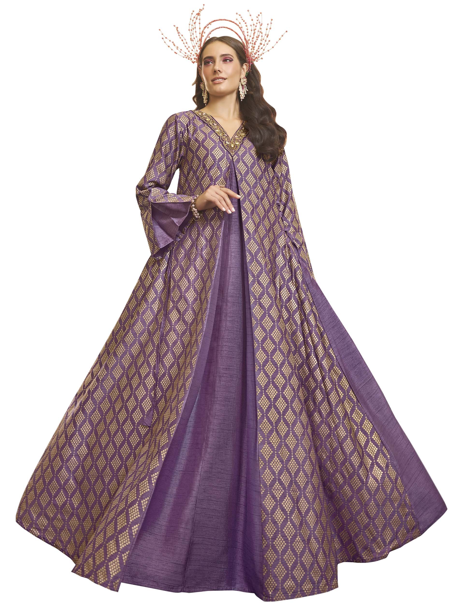 If you are looking for a royal look, this spectacular cotton purple jalabiya is the perfect choice for you, designed with long sleeves and unique gold artwork.