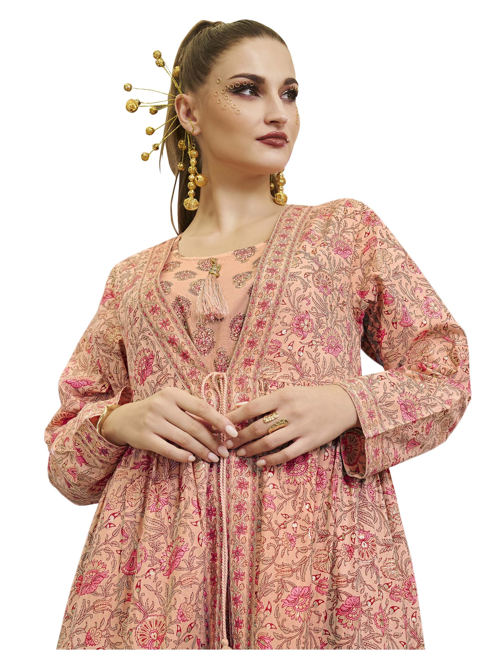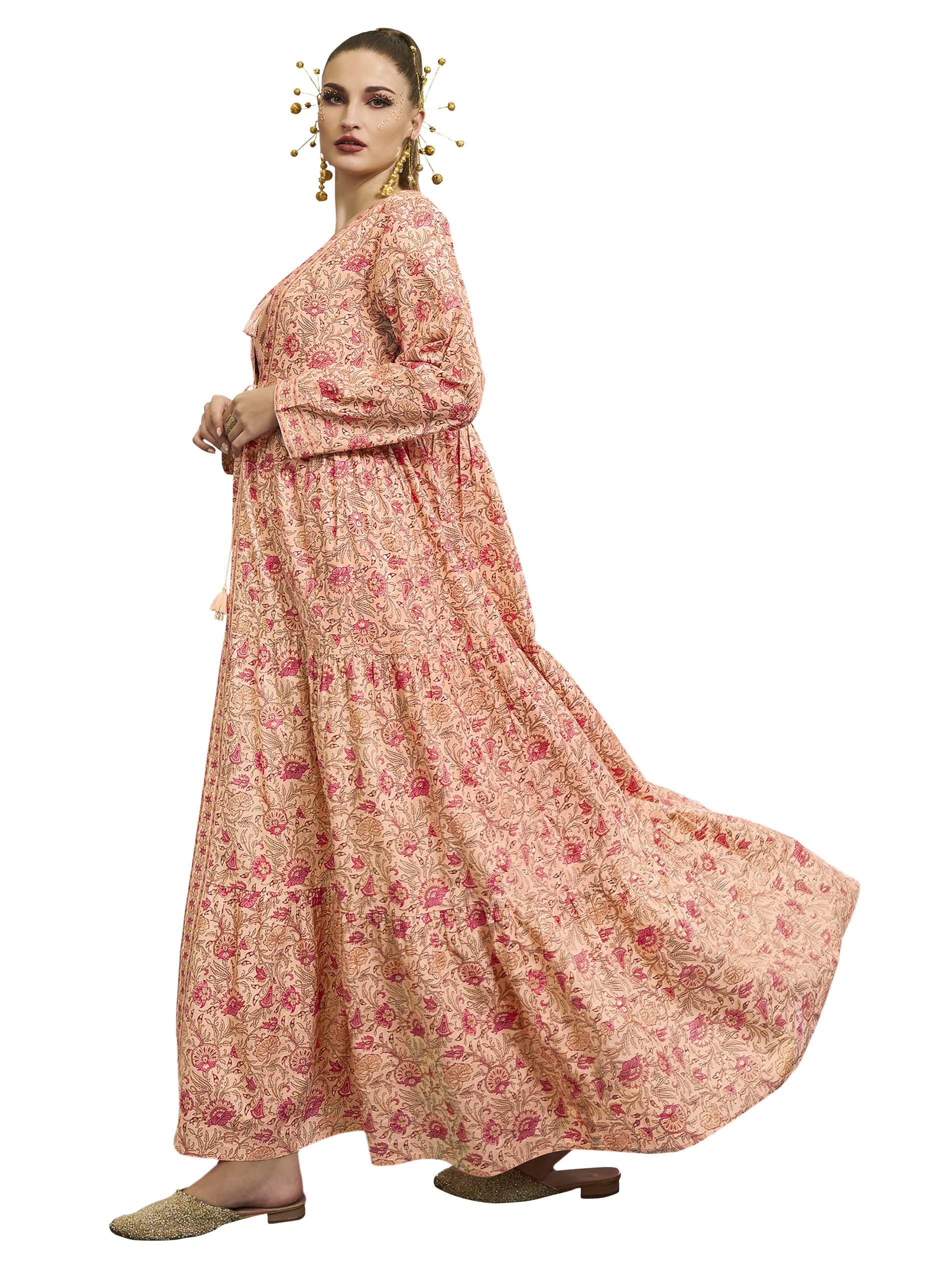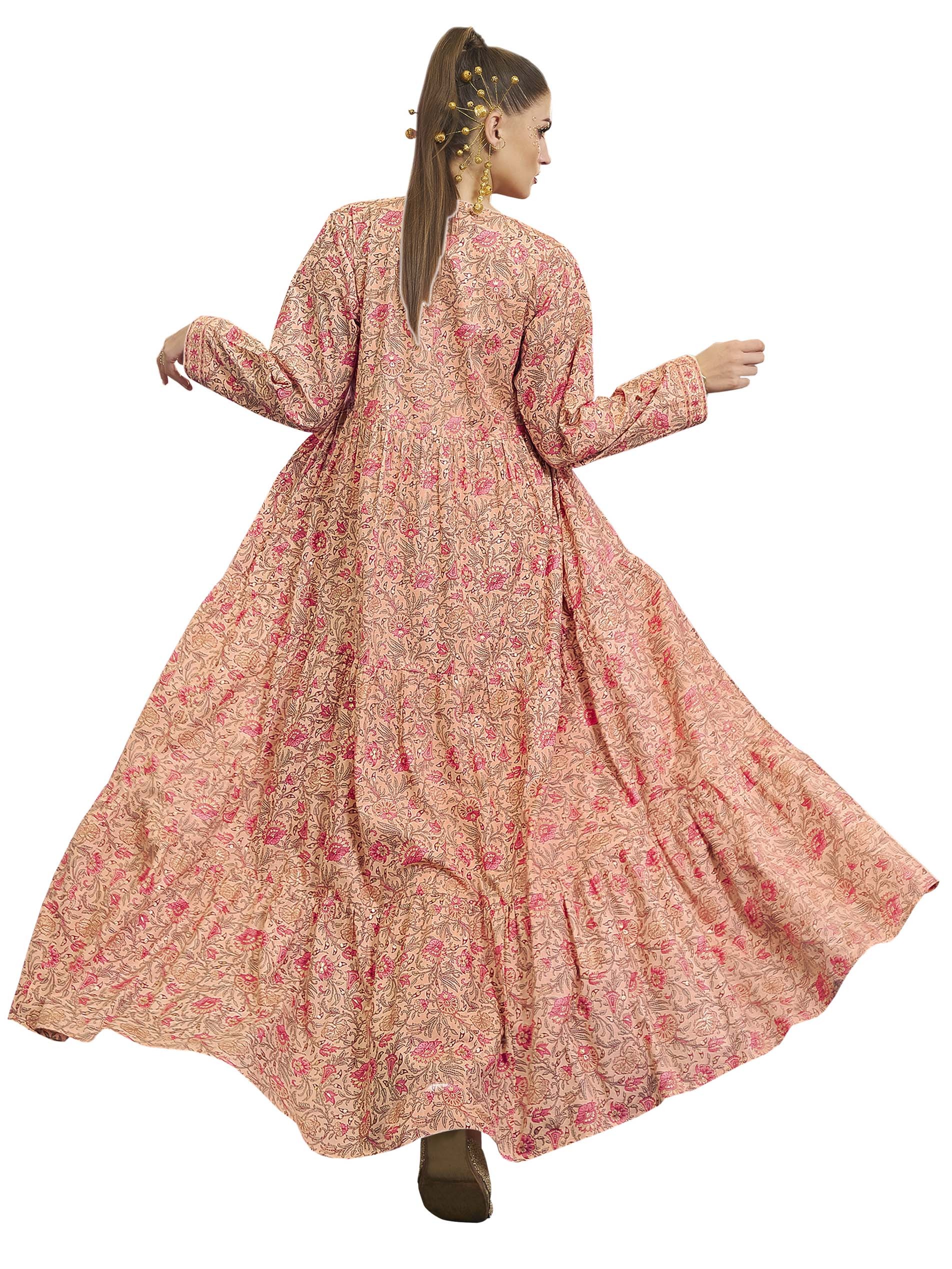 Experience a regal presence in this elegant, long pink maxi dress. Crafted from cotton with unique patterns, it's perfect for special parties and events.