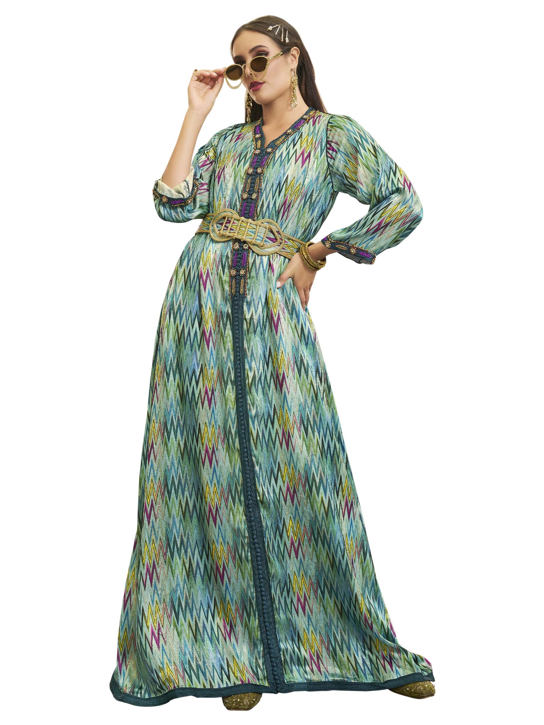 If you love uniqueness, this cheerful cotton jalabiya must be your choice, featuring chest embroidery and elegant belt.